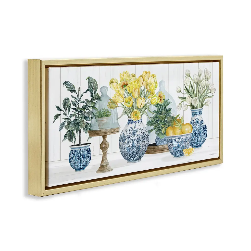 Stupell Yellow Tulips & Lemon Fruits Framed Floater Canvas Wall Art Design By Cindy Jacobs - 25 X 11 - Gold