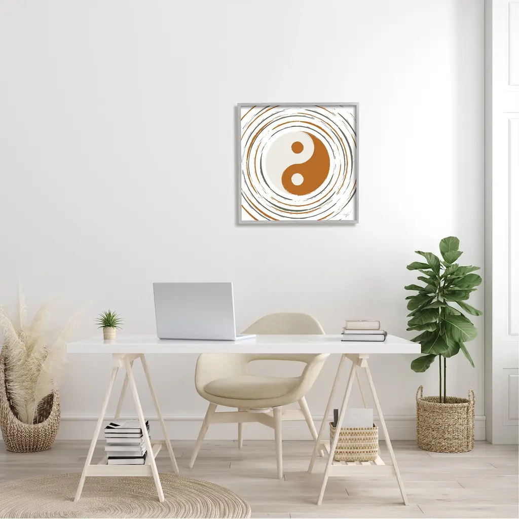 Our Framed Giclee Wall Art adds a touch of class to any space in your home or office. Frames are available in three alluring styles: black, gray farmhouse and white. Our textured artwork will add more depth and dimension to any space. Each piece is mounted with a 1.5 inch thick wood grain frame that is ready to hang! Looking for a statement piece? We have oversized artwork available.Features: Wall Art is Ready to Hang - No Installation or Hardware Needed. For Easy Set Up Lean or Layer Artwork on Shelf or Against Wall.Our giclee prints are carefully mounted on a durable MDF backing, and then perfectly finished in a 1.5 inch thick woodgrain frame. Mounted frame colors include black, gray farmhouse and white. Made In USA.Artwork Relates To: Symbol; Graphics; Yin yang, Taijitu, Spiritual, PatternDesign by Martina Pavlova