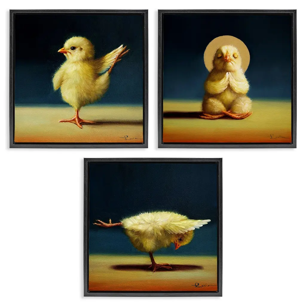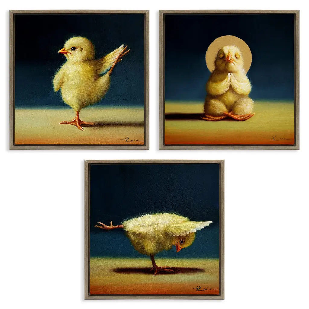 Stupell Yoga Chicks Funny Farm Animals Tranquil Stretching Birds 9Pc Multi Piece Framed Wall Art Set - Multi-Color - Grey