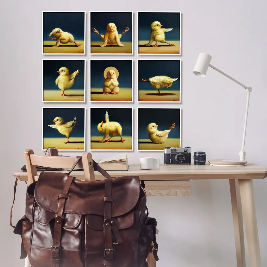 Stupell Yoga Chicks Funny Farm Animals Tranquil Stretching Birds 9Pc Multi Piece Framed Wall Art Set - Multi-Color - White