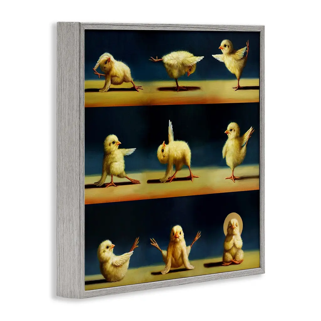 Stupell Yoga Chicks Stretching Farm Animals Funny Exercise Painting Framed Wall Art - Multi-Color - 12 X 12 - Grey