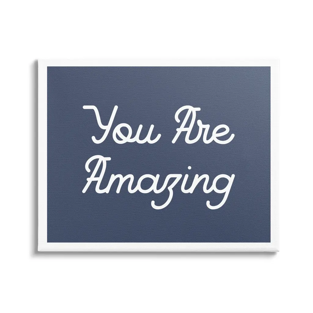 We create our stretched canvas to the highest standards. Using only the highest quality inks and canvas on Mimaki printers, we hand-cut and stretch each piece over a 1.5-inch thick wooden frame for hanging. As a result, the art comes ready to hang on the sturdy ledge with no installation required. Stupell Wall Art is made in the USA.Features: Dimensions: 20 x 1.5 x 16 InchesStretched Canvas Sizes Include Standard: 20 x 1.5 x 16 Large: 30 x 1.5 x 20 X-Large: 40 x 1.5 x 30 Oversized: 48 x 1.5 x 36Wall Art is Ready to Hang - No Installation or Hardware Needed. For Easy Set Up Lean or Layer Artwork on Shelf or Against Wall.Our stretched canvas is created with the highest standards. We use only the highest quality inks and canvas on our in house Mimaki printers, and then hand cut and stretch each piece over a 1.5 inch thick wooden frame for hanging. Made In USA.Artwork Relates To: Phrase, Self Confidence, Uplifting, You Are AmazingDesign by Lil' Rue