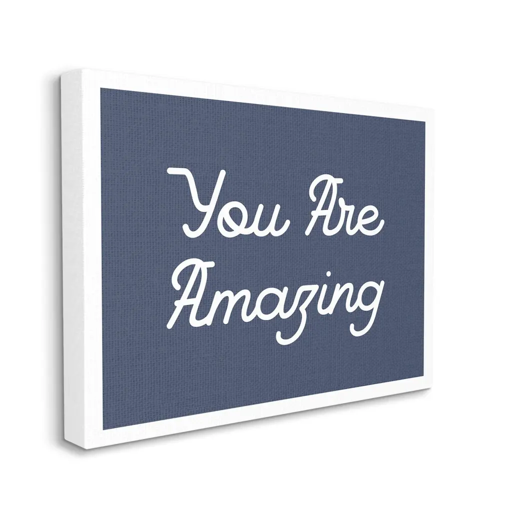 We create our stretched canvas to the highest standards. Using only the highest quality inks and canvas on Mimaki printers, we hand-cut and stretch each piece over a 1.5-inch thick wooden frame for hanging. As a result, the art comes ready to hang on the sturdy ledge with no installation required. Stupell Wall Art is made in the USA.Features: Dimensions: 20 x 1.5 x 16 InchesStretched Canvas Sizes Include Standard: 20 x 1.5 x 16 Large: 30 x 1.5 x 20 X-Large: 40 x 1.5 x 30 Oversized: 48 x 1.5 x 36Wall Art is Ready to Hang - No Installation or Hardware Needed. For Easy Set Up Lean or Layer Artwork on Shelf or Against Wall.Our stretched canvas is created with the highest standards. We use only the highest quality inks and canvas on our in house Mimaki printers, and then hand cut and stretch each piece over a 1.5 inch thick wooden frame for hanging. Made In USA.Artwork Relates To: Phrase, Self Confidence, Uplifting, You Are AmazingDesign by Lil' Rue