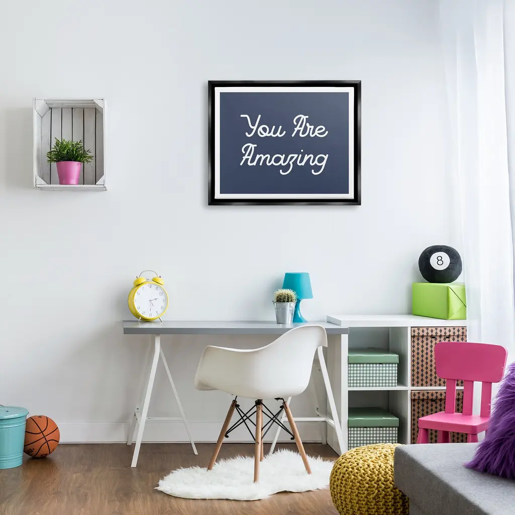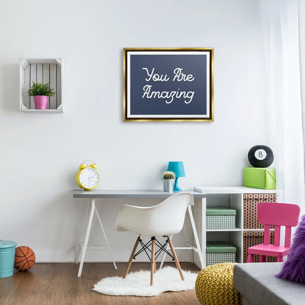 Elevate your home or office to the next level with Stupell Framed Floating Canvas Wall Art. Our premium hand-stretched canvas is mounted securely into a sturdy lightweight frame. The museum-style gap between the wrapped canvas and the box frame gives the illusion of floating artwork. Stupell Wall Art is made in the USA.Features: Dimensions: 21 x 1.7 x 17 Frame, 20 x 1.5 x 16 Canvas ArtFloating Frame Sizes Include Standard: 21 x 1.7 x 17 Oversized: 31 x 1.7 x 25Wall Art is Ready to Hang - No Installation or Hardware Needed. For Easy Set Up Lean or Layer Artwork on Shelf or Against Wall.Our elevated 1.7" Thick Floating Frame is the perfect complement to our canvas style Wall Art. We use only the highest quality inks in house with industry leading printing solutions. Canvas is hand stretched over a durable wood foundation and then mounted securly into a Modern Box Frame. Made in the USA.Artwork Relates To: Phrase, Self Confidence, Uplifting, You Are AmazingDesign by Lil' Rue