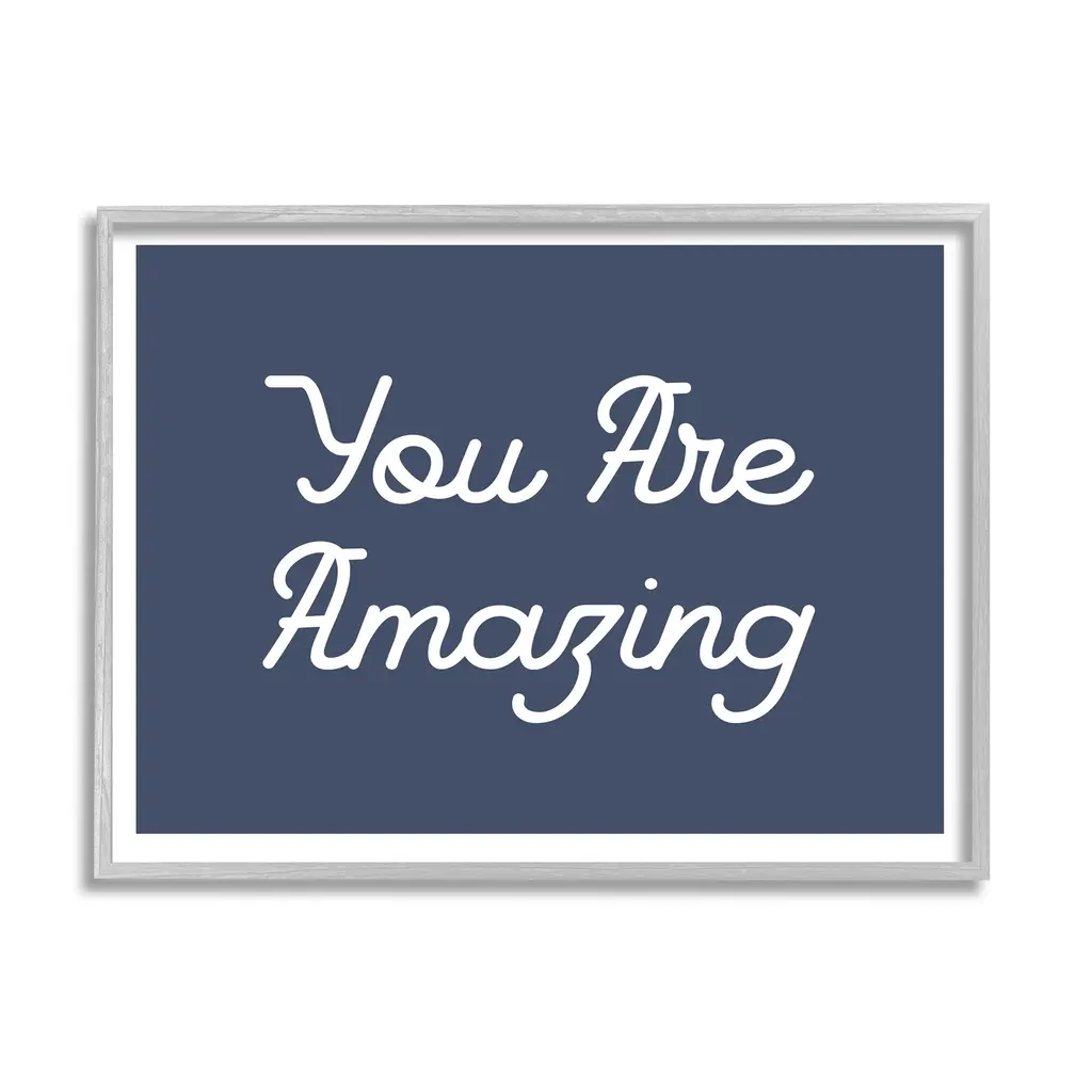 Add dimension to any room with our textured Framed Giclee Artwork. Our framed artwork is securely mounted into a 1.5-inch thick wood grain frame and ready to hang. Frames are available in three alluring styles: black, gray farmhouse and white. In addition, you should check out our oversized options if you want a statement piece. Stupell Wall Art is made in the USA.Features: Dimensions: 14 x 1.5 x 11 FramedFramed Giclee Sizes Include Standard: 14 x 1.5 x 11 Large: 20 x 1.5 x 16 Oversized: 30 x 1.5 x 24Wall Art is Ready to Hang - No Installation or Hardware Needed. For Easy Set Up Lean or Layer Artwork on Shelf or Against Wall.Our giclée prints are carefully mounted on a durable MDF backing, and then perfectly finished in a 1.5 inch thick woodgrain frame. Mounted frame colors include black, gray farmhouse and white. Made In USA.Artwork Relates To: Phrase, Self Confidence, Uplifting, You Are AmazingDesign by Lil' Rue