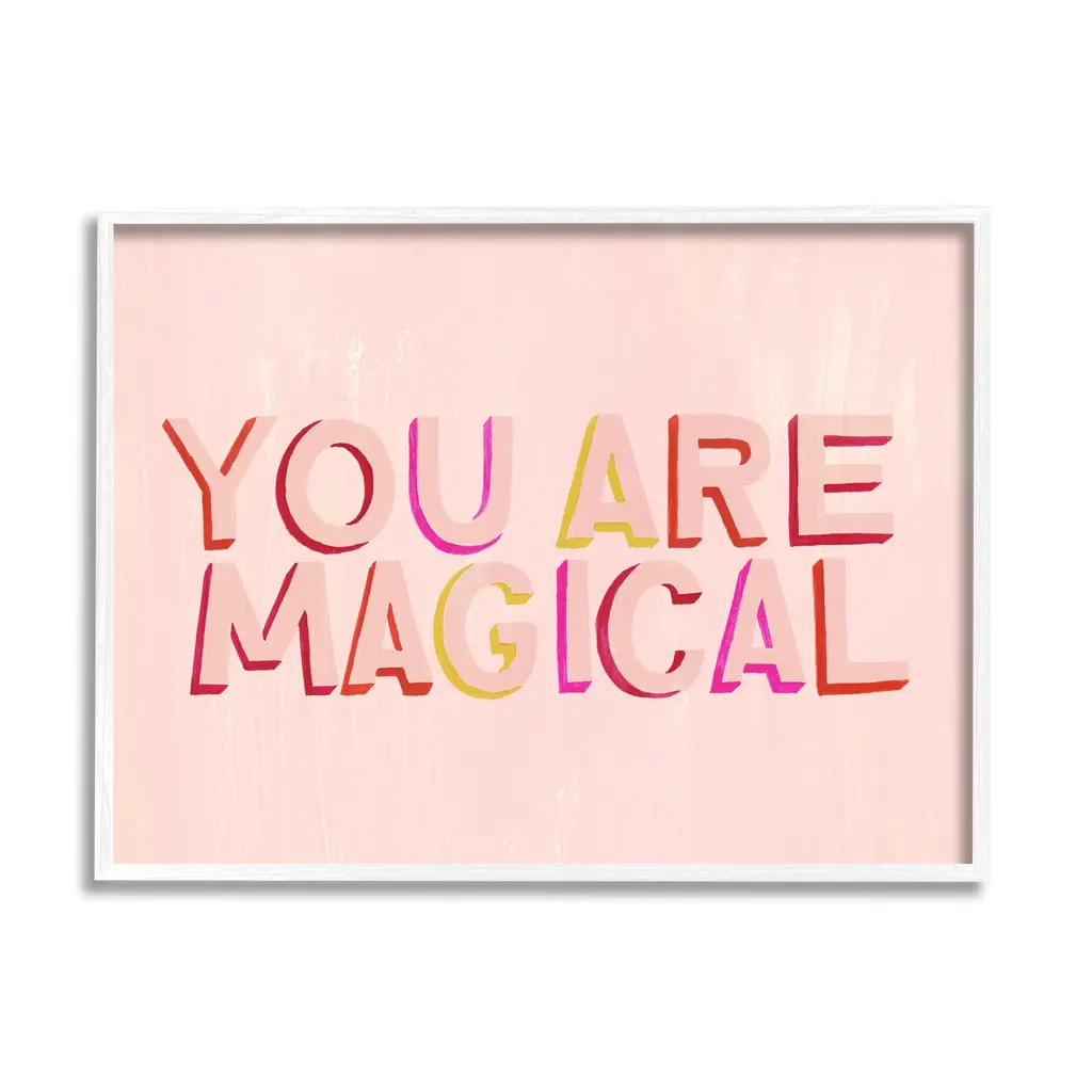 Add dimension to any room with our textured Framed Giclee Artwork. Our framed artwork is securely mounted into a 1.5-inch thick wood grain frame and ready to hang. Frames are available in three alluring styles: black, gray farmhouse and white. In addition, you should check out our oversized options if you want a statement piece. Stupell Wall Art is made in the USA.Features: Dimensions: 14 x 1.5 x 11 FramedFramed Giclee Sizes Include Standard: 14 x 1.5 x 11 Large: 20 x 1.5 x 16 Oversized: 30 x 1.5 x 24Wall Art is Ready to Hang - No Installation or Hardware Needed. For Easy Set Up Lean or Layer Artwork on Shelf or Against Wall.Our giclée prints are carefully mounted on a durable MDF backing, and then perfectly finished in a 1.5 inch thick woodgrain frame. Mounted frame colors include black, gray farmhouse and white. Made In USA.Artwork Relates To: Pink, Uplifting, Inspirational, You Are MagicalDesign by Grace Popp