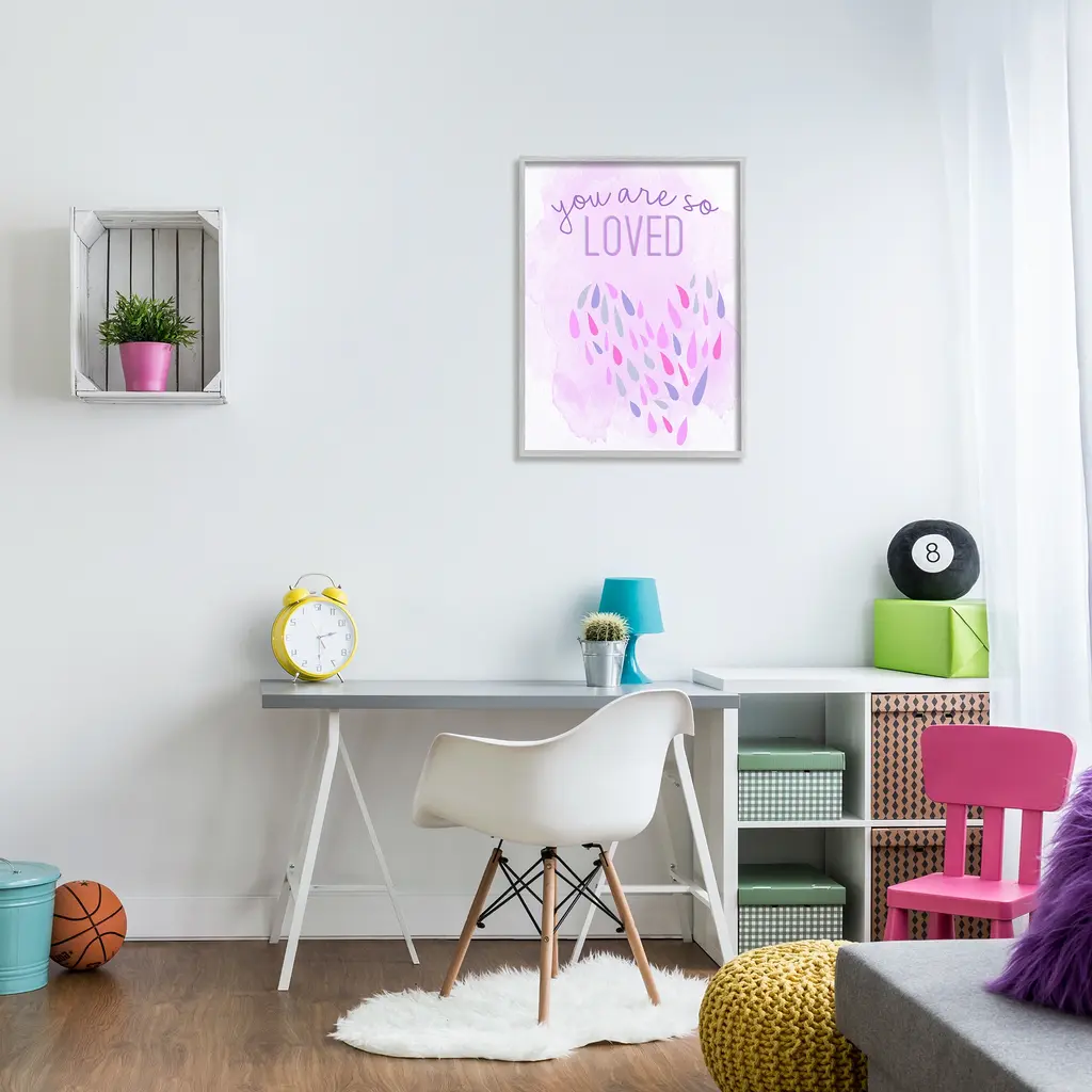 Add dimension to any room with our textured Framed Giclee Artwork. Our framed artwork is securely mounted into a 1.5-inch thick wood grain frame and ready to hang. Frames are available in three alluring styles: black, gray farmhouse and white. In addition, you should check out our oversized options if you want a statement piece. Stupell Wall Art is made in the USA.Features: Dimensions: 11 x 1.5 x 14 FramedFramed Giclee Sizes Include Standard: 11 x 1.5 x 14 Large: 16 x 1.5 x 20 Oversized: 24 x 1.5 x 30Wall Art is Ready to Hang - No Installation or Hardware Needed. For Easy Set Up Lean or Layer Artwork on Shelf or Against Wall.Our giclée prints are carefully mounted on a durable MDF backing, and then perfectly finished in a 1.5 inch thick woodgrain frame. Mounted frame colors include black, gray farmhouse and white. Made In USA.Artwork Relates To: Heart, Purple, Abstract, You Are So LovedDesign by Kim Allen