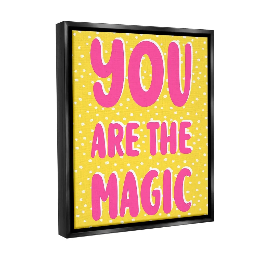 Elevate your home or office to the next level with Stupell Framed Floating Canvas Wall Art. Our premium hand-stretched canvas is mounted securely into a sturdy lightweight frame. The museum-style gap between the wrapped canvas and the box frame gives the illusion of floating artwork. Stupell Wall Art is made in the USA.Features: Dimensions: 17 x 1.7 x 21 Frame, 16 x 1.5 x 20 Canvas ArtFloating Frame Canvas Products are available in sizes 17"x21" and 25"x31". All Floating Frame Canvas Products have a 1.7" Depth.Wall Art is Ready to Hang with Hardware Free Hanging. No Installation required. For Easy Set Up Lean or Layer Artwork on Shelf or Against Wall. Artwork is Permently Fixed into the Frame.Our elevated 1.7" Thick Floating Frame is the perfect complement to our canvas style Wall Art. We use only the highest quality inks in house with industry leading printing solutions. Canvas is hand stretched over a durable wood foundation and then mounted securly into a Modern Box Frame. Made in the USA.Artwork Relates To: Pattern, Polka Dot, Phrase, Inspirational, Motivational, You Are The MagicDesign by Martina Pavlova