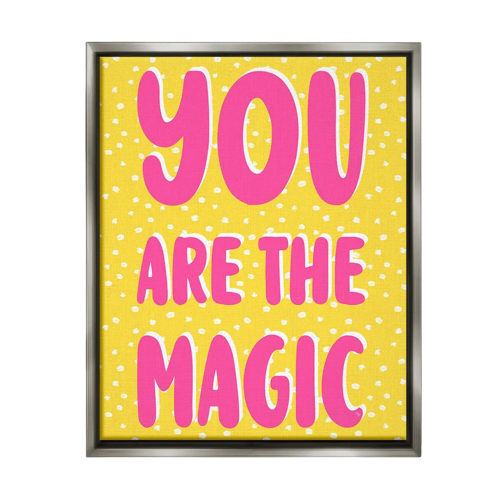 Add dimension to any room with our textured Framed Giclee Artwork. Our framed artwork is securely mounted into a 1.5-inch thick wood grain frame and ready to hang. Frames are available in three alluring styles: black, gray farmhouse and white. In addition, you should check out our oversized options if you want a statement piece. Stupell Wall Art is made in the USA.Features: Dimensions: 11 x 1.5 x 14 FramedFramed Giclee Products are available in the sizes 11"x14", 16"x20" or 24"x30". All Framed Giclee Products have a 1.5" Depth. Wall Art is Ready to Hang with Hardware Free Hanging. No installation required. For Easy Set Up Lean or Layer Artwork on Shelf or Against Wall.Our giclée prints are carefully mounted on a durable MDF backing, and then perfectly finished in a 1.5 inch thick woodgrain frame. Mounted frame colors include black, gray farmhouse and white. Made In USA.Artwork Relates To: Pattern, Polka Dot, Phrase, Inspirational, Motivational, You Are The MagicDesign by Martina Pavlova