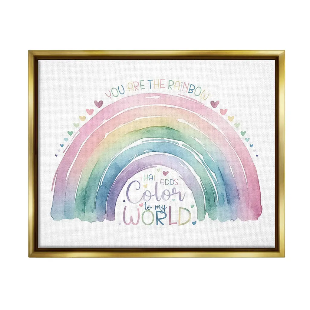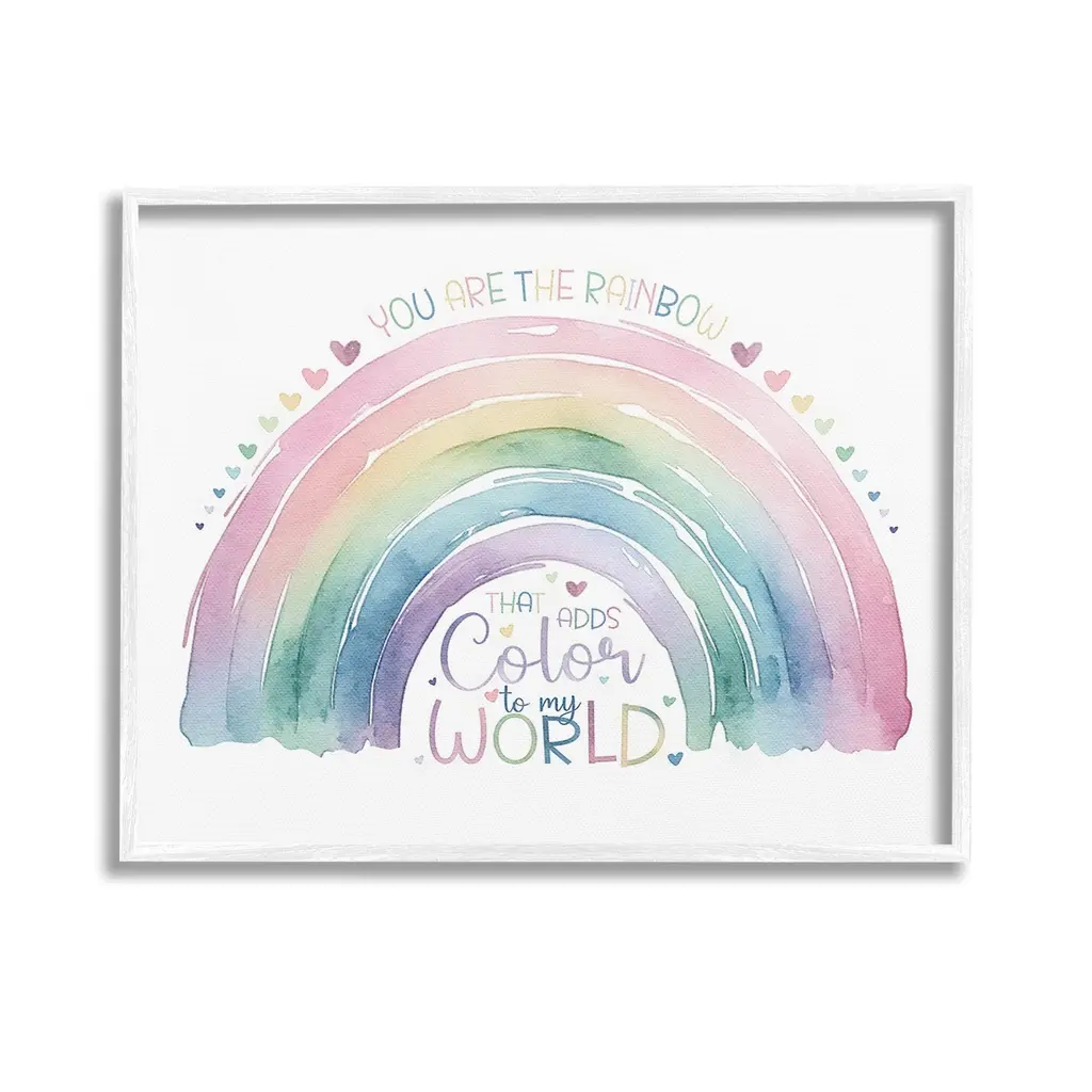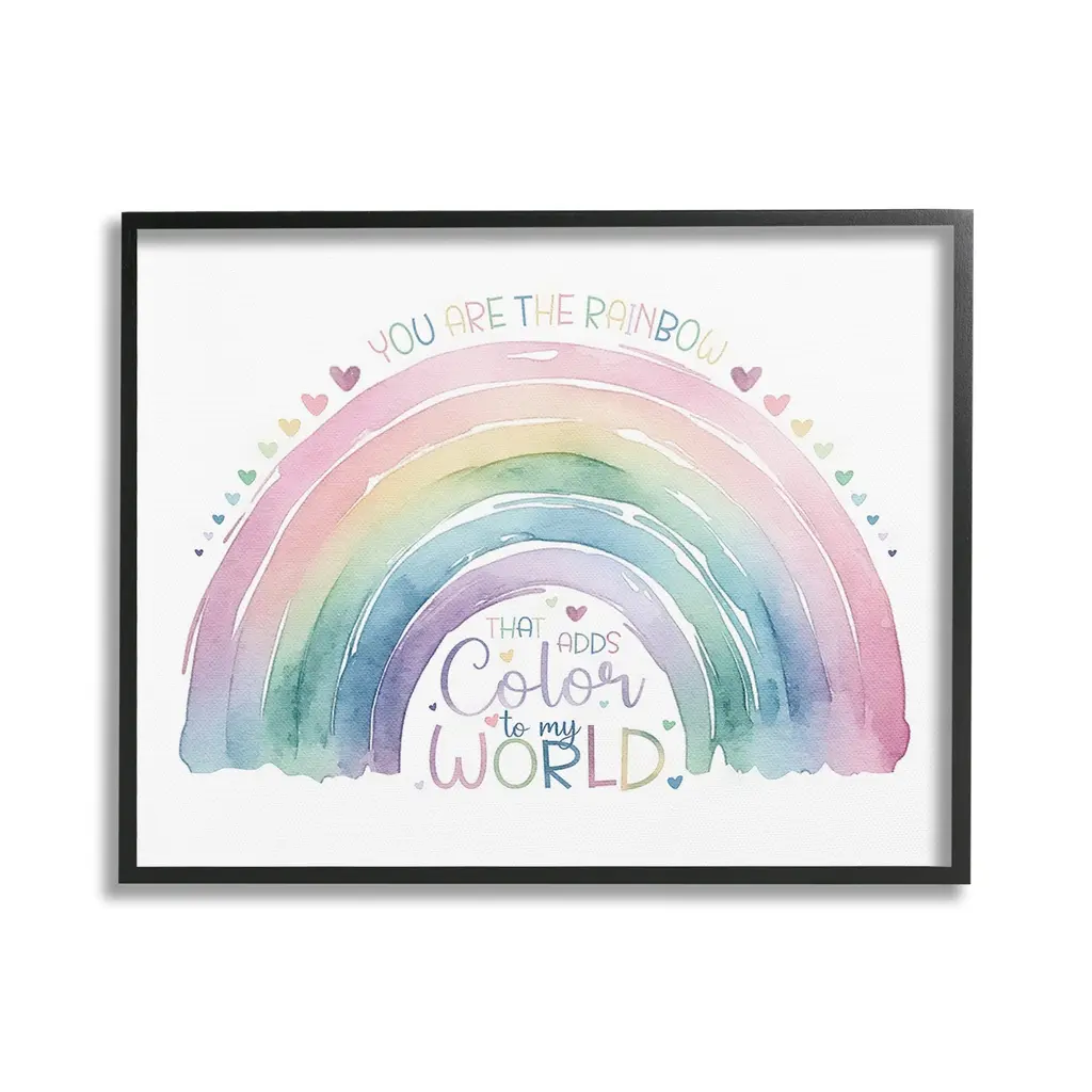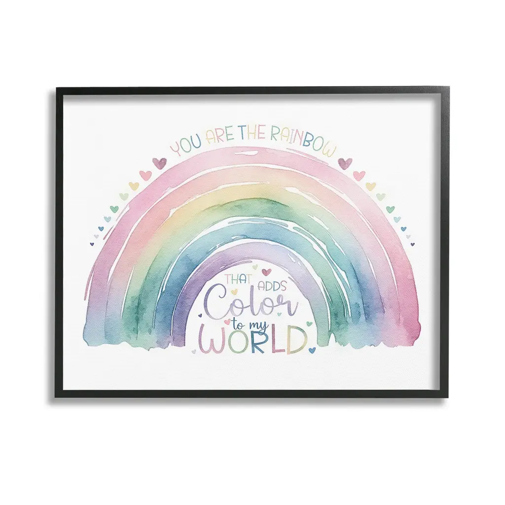 Add dimension to any room with our textured Framed Giclee Artwork. Our framed artwork is securely mounted into a 1.5-inch thick wood grain frame and ready to hang. Frames are available in three alluring styles: black, gray farmhouse and white. In addition, you should check out our oversized options if you want a statement piece. Stupell Wall Art is made in the USA.Features: Dimensions: 14 x 1.5 x 11 FramedFramed Giclee Products are available in the sizes 14"x11", 20"x16" or 30"x24". All Framed Giclee Products have a 1.5" Depth. Wall Art is Ready to Hang with Hardware Free Hanging. No installation required. For Easy Set Up Lean or Layer Artwork on Shelf or Against Wall.Our giclée prints are carefully mounted on a durable MDF backing, and then perfectly finished in a 1.5 inch thick woodgrain frame. Mounted frame colors include black, gray farmhouse and white. Made In USA.Artwork Relates To: Landscape, Nature, Cloud, Rainbow, Pastel, Inspirational, Phrase, Heart, You are the Rainbow that Adds Color to my WorldDesign by Amanda Greenwood