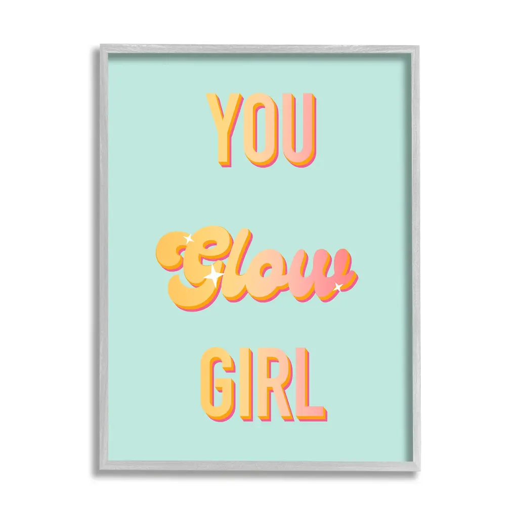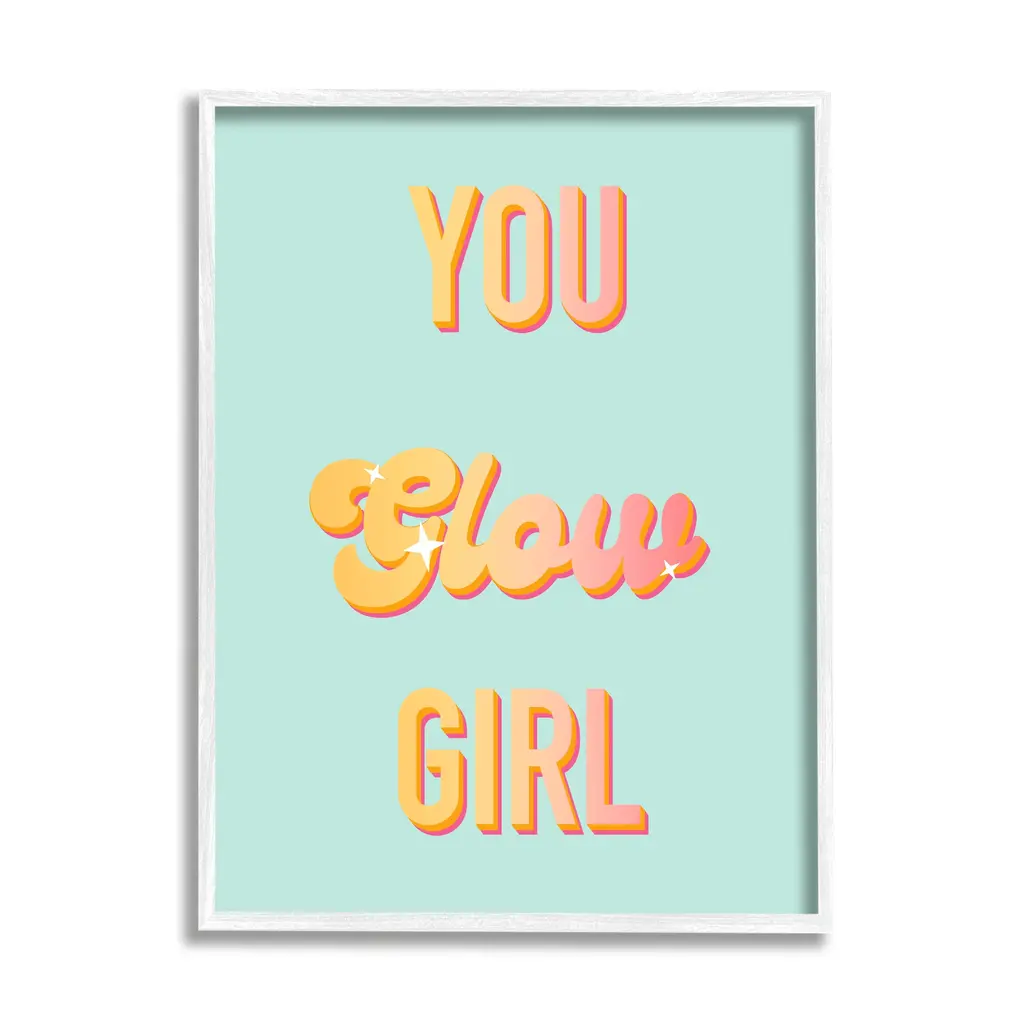 Add dimension to any room with our textured Framed Giclee Artwork. Our framed artwork is securely mounted into a 1.5-inch thick wood grain frame and ready to hang. Frames are available in three alluring styles: black, gray farmhouse and white. In addition, you should check out our oversized options if you want a statement piece. Stupell Wall Art is made in the USA.Features: Dimensions: 11 x 1.5 x 14 FramedFramed Giclee Sizes Include Standard: 11 x 1.5 x 14 Large: 16 x 1.5 x 20 Oversized: 24 x 1.5 x 30Wall Art is Ready to Hang - No Installation or Hardware Needed. For Easy Set Up Lean or Layer Artwork on Shelf or Against Wall.Our giclée prints are carefully mounted on a durable MDF backing, and then perfectly finished in a 1.5 inch thick woodgrain frame. Mounted frame colors include black, gray farmhouse and white. Made In USA.Artwork Relates To: Inspirational, Motivational, Self Confidence, You Glow GirlDesign by Ashley Singleton