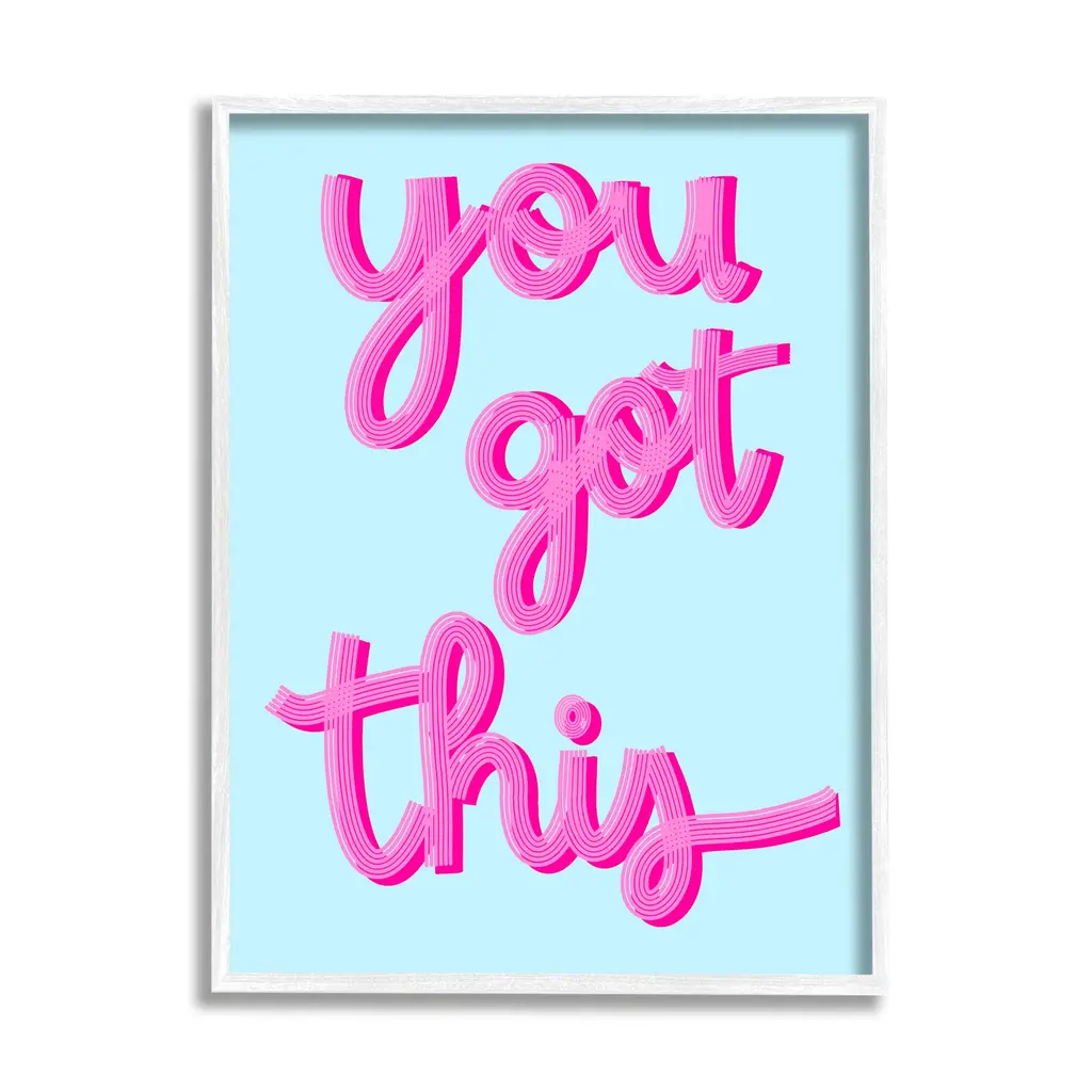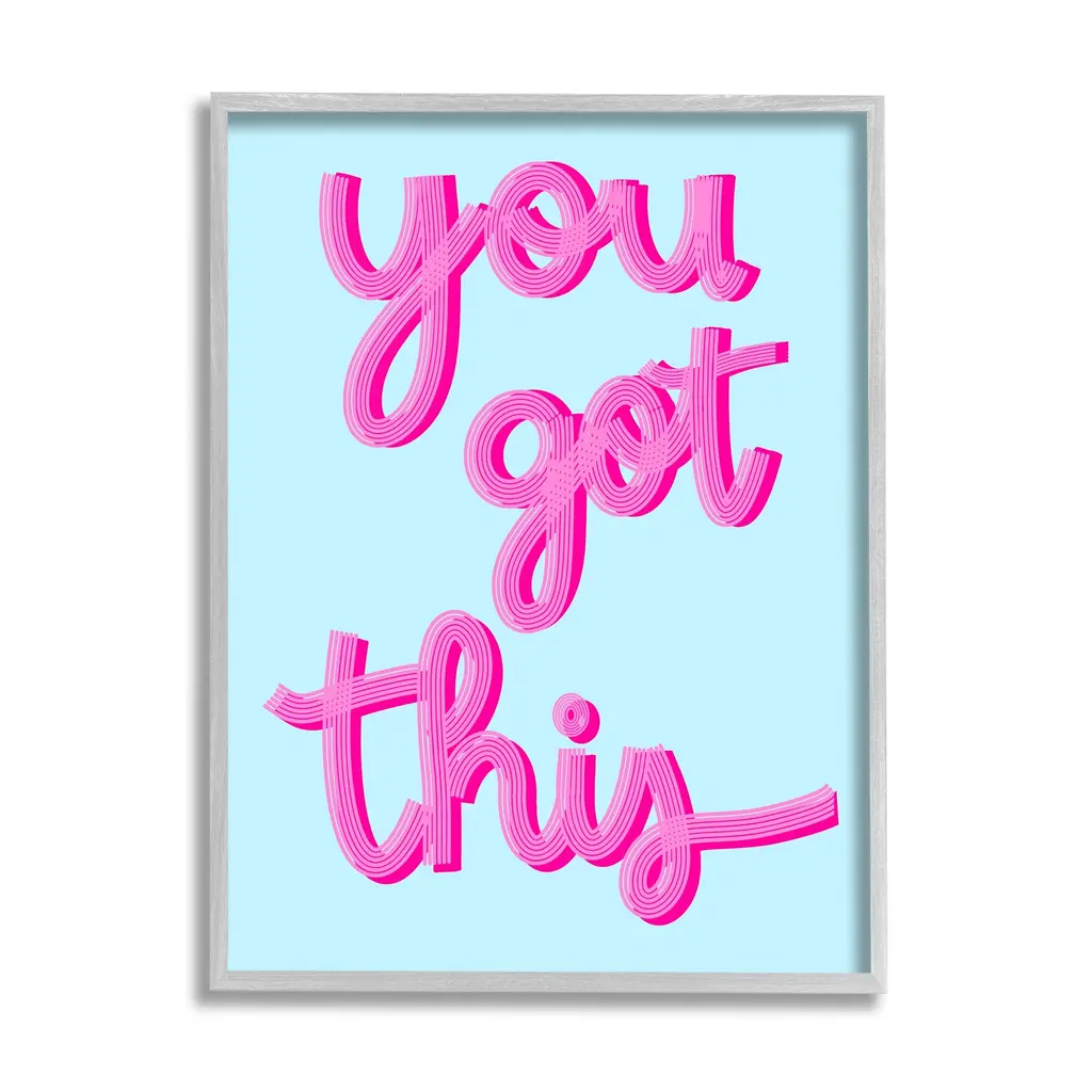 Stupell You Got This Pink & Blue Phrase Framed Floater Canvas Wall Art By Ashley Singleton - 16 X 20 - Black
