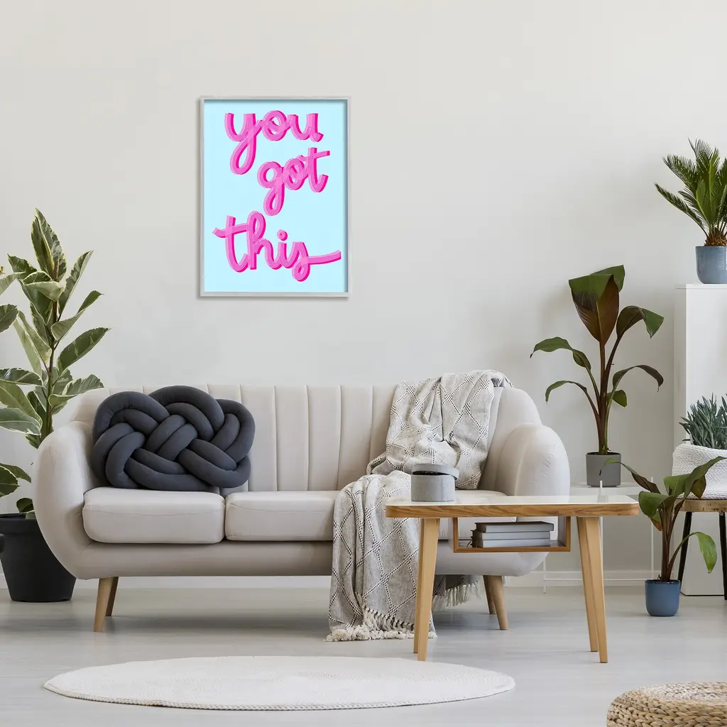 Stupell You Got This Pink & Blue Phrase Framed Giclee Art By Ashley Singleton - 24 X 30 - Grey