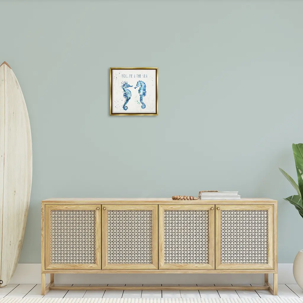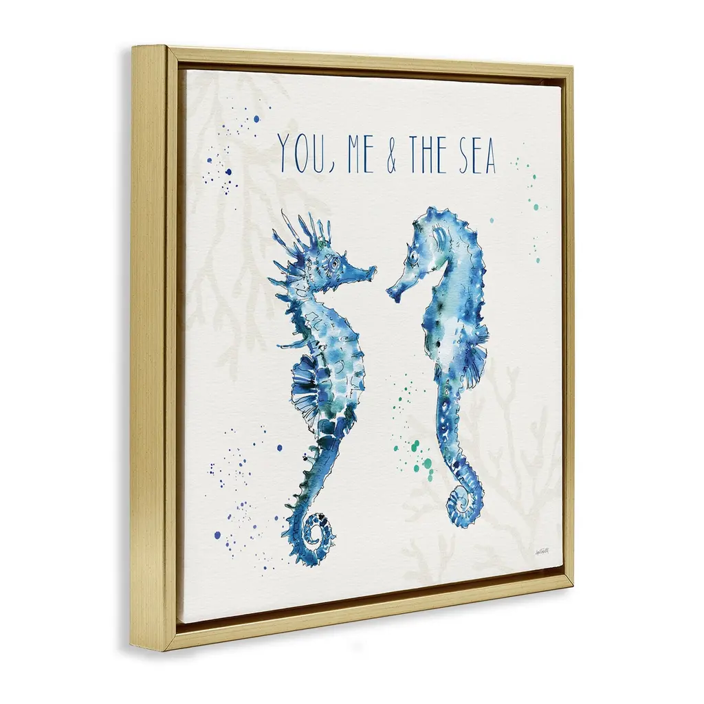 Stupell You Me & Sea Quote Seahorse Framed Floater Canvas Wall Art Design By Anne Tavoletti - 18 X 18 - Gold