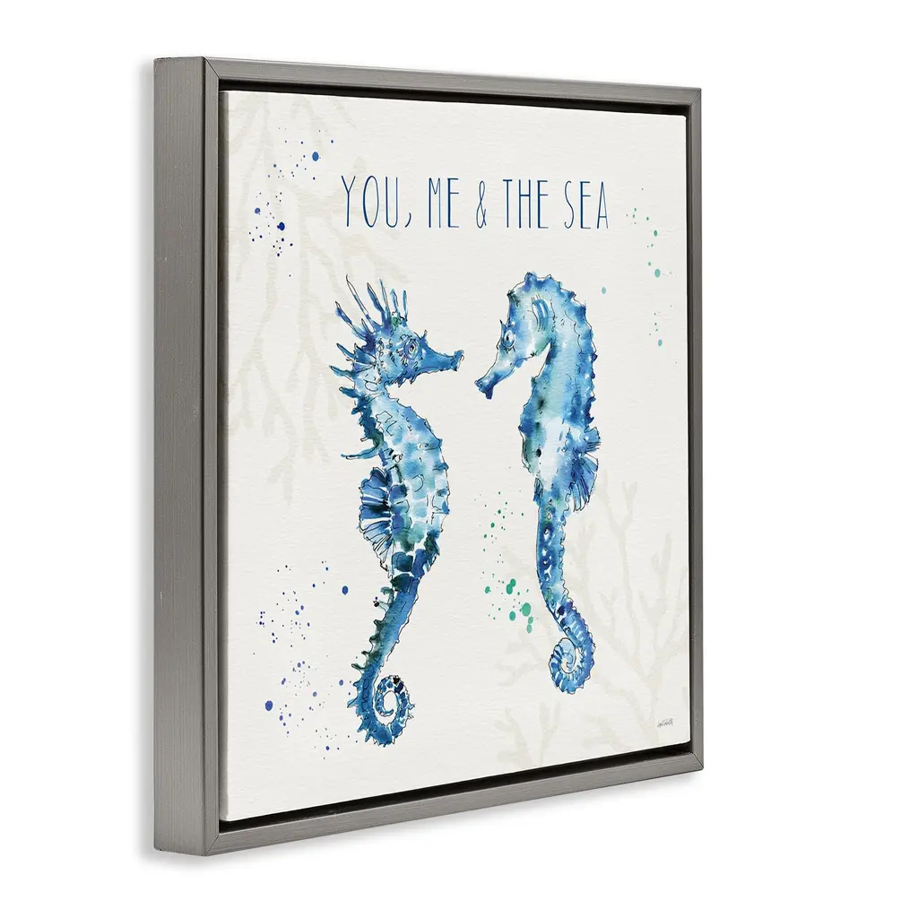 Stupell You Me & Sea Quote Seahorse Framed Floater Canvas Wall Art Design By Anne Tavoletti - 18 X 18 - Grey