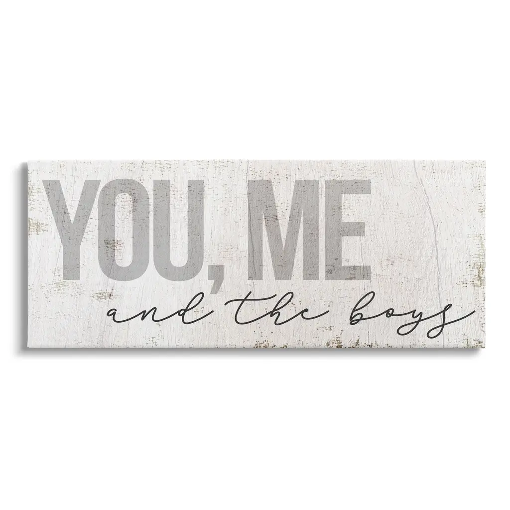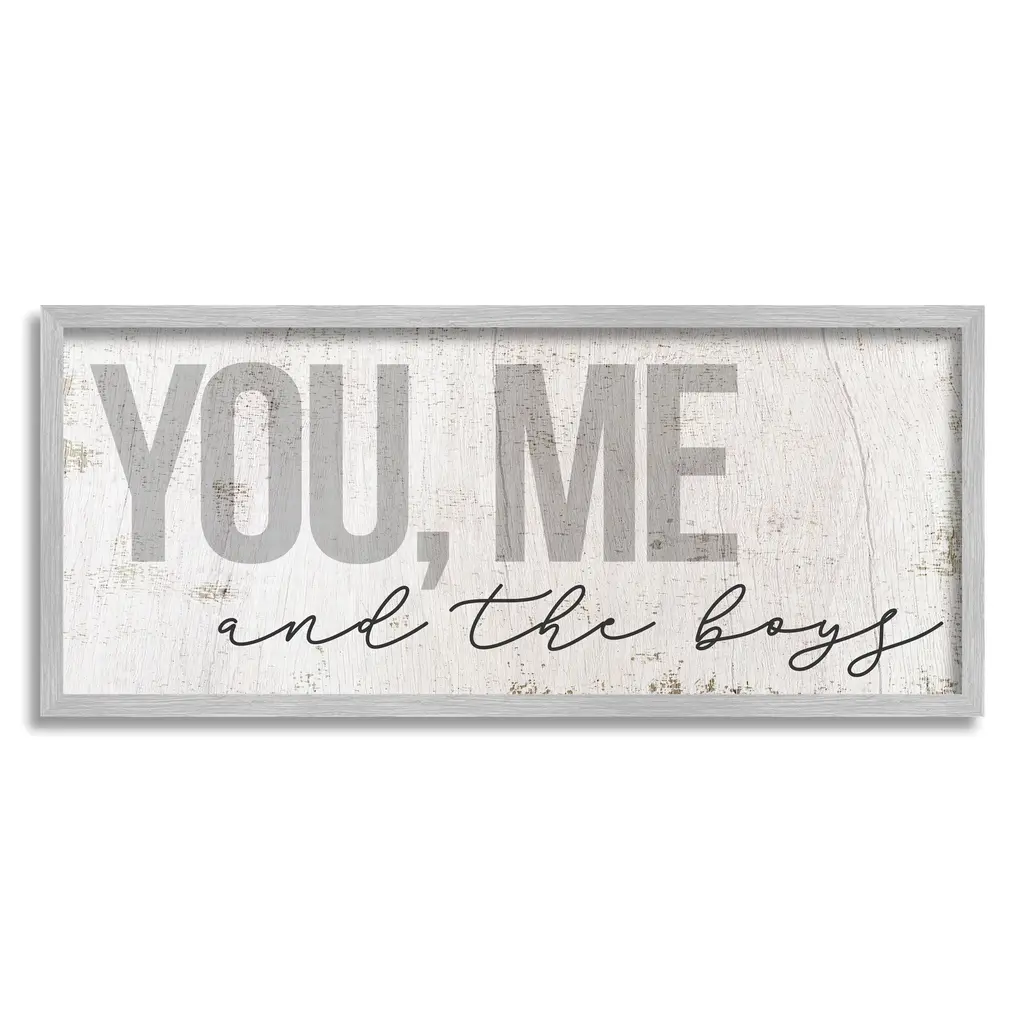 Add dimension to any room with our textured Framed Giclee Artwork. Our framed artwork is securely mounted into a 1.5-inch thick wood grain frame and ready to hang. Frames are available in three alluring styles: black, gray farmhouse and white. In addition, you should check out our oversized options if you want a statement piece. Stupell Wall Art is made in the USA.Features: Dimensions: 24 x 1.5 x 10 FramedFramed Giclee Sizes Include Standard: 24 x 1.5 x 10 Oversized: 30 x 1.5 x 13Wall Art is Ready to Hang - No Installation or Hardware Needed. For Easy Set Up Lean or Layer Artwork on Shelf or Against Wall.Our giclée prints are carefully mounted on a durable MDF backing, and then perfectly finished in a 1.5 inch thick woodgrain frame. Mounted frame colors include black, gray farmhouse and white. Made In USA.Artwork Relates To: Family, Farmhouse, Love, You Me And The BoysDesign by Lil' Rue
