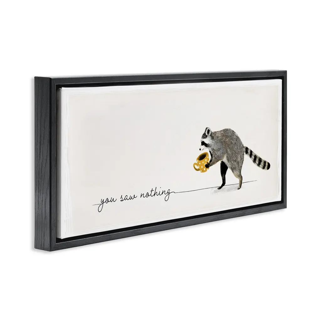 Stupell You Saw Nothing Raccoon & Coffee Framed Floater Canvas Wall Art Design By Victoria Barnes - 25 X 11 - Black