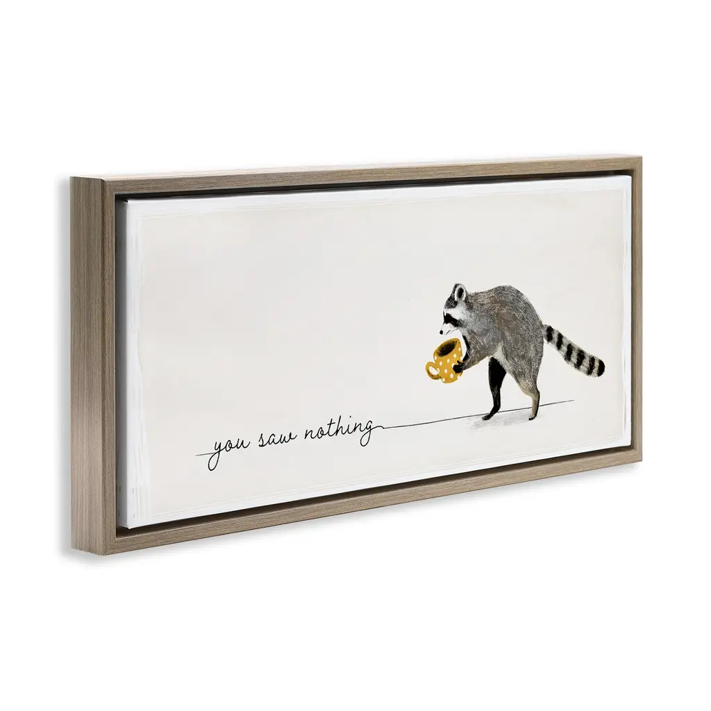 Stupell You Saw Nothing Raccoon & Coffee Framed Floater Canvas Wall Art Design By Victoria Barnes - 25 X 11 - Brown