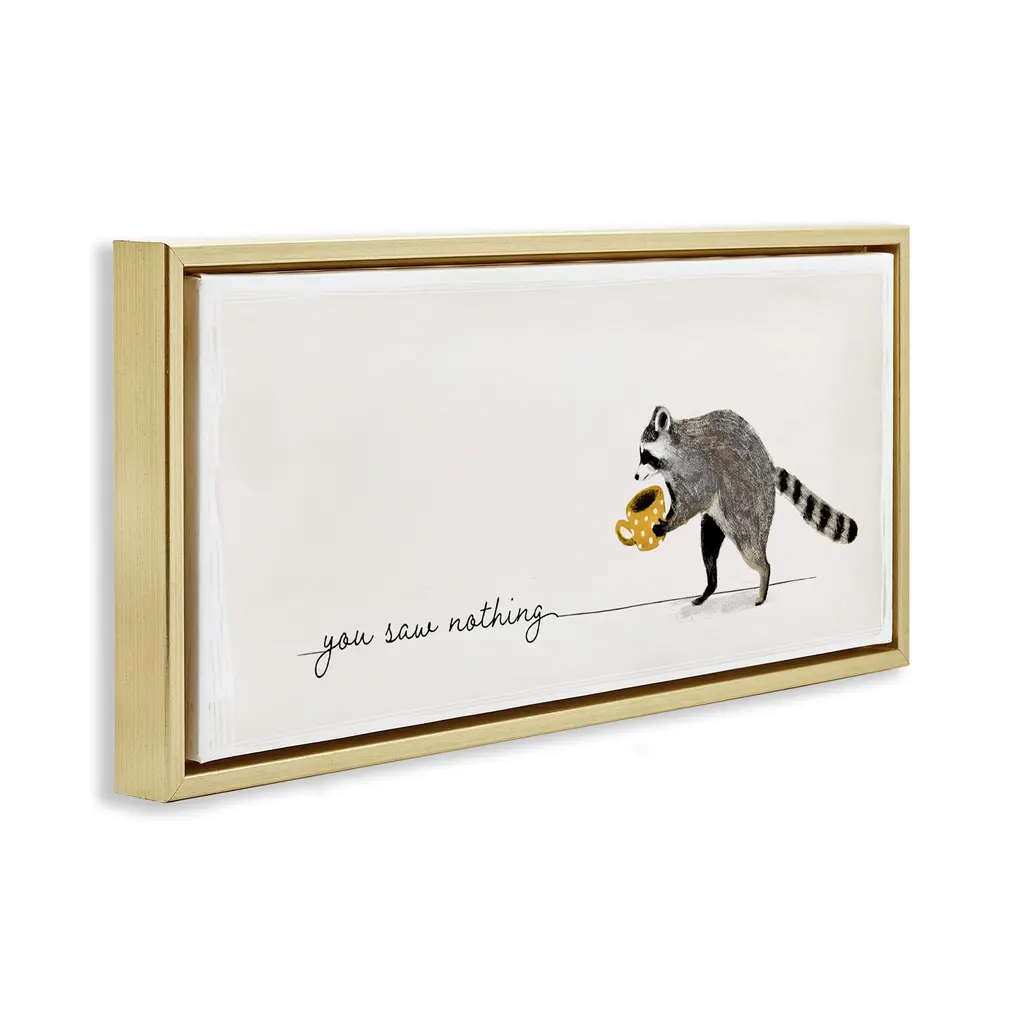 Stupell You Saw Nothing Raccoon & Coffee Framed Floater Canvas Wall Art Design By Victoria Barnes - 25 X 11 - Gold