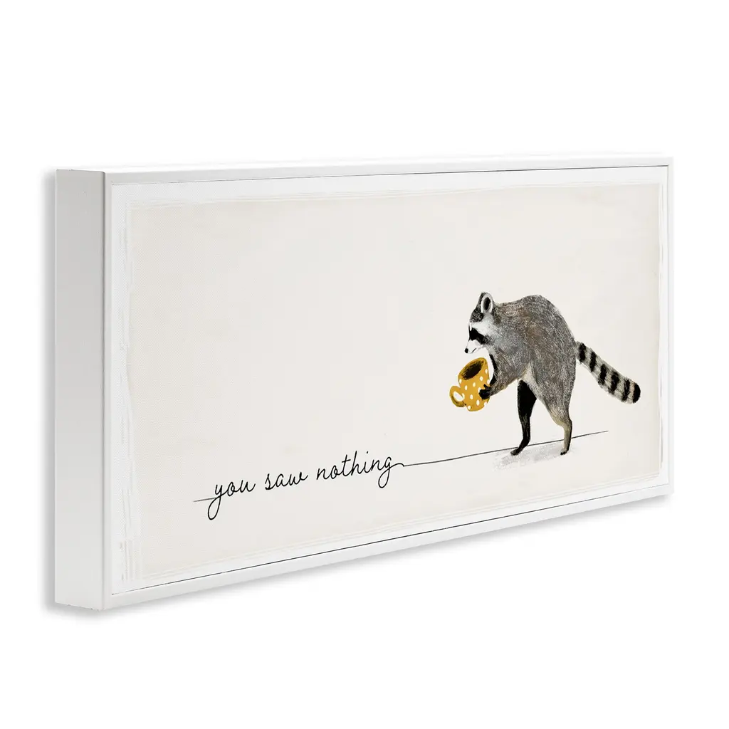 Stupell You Saw Nothing Raccoon & Coffee Framed Giclee Art Design By Victoria Barnes - 24 X 10 - White