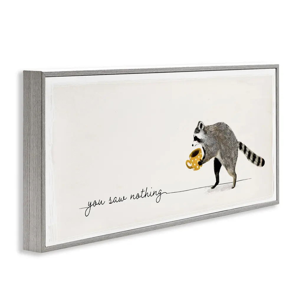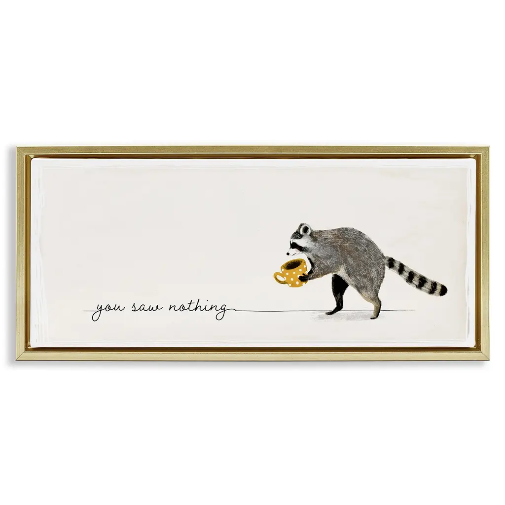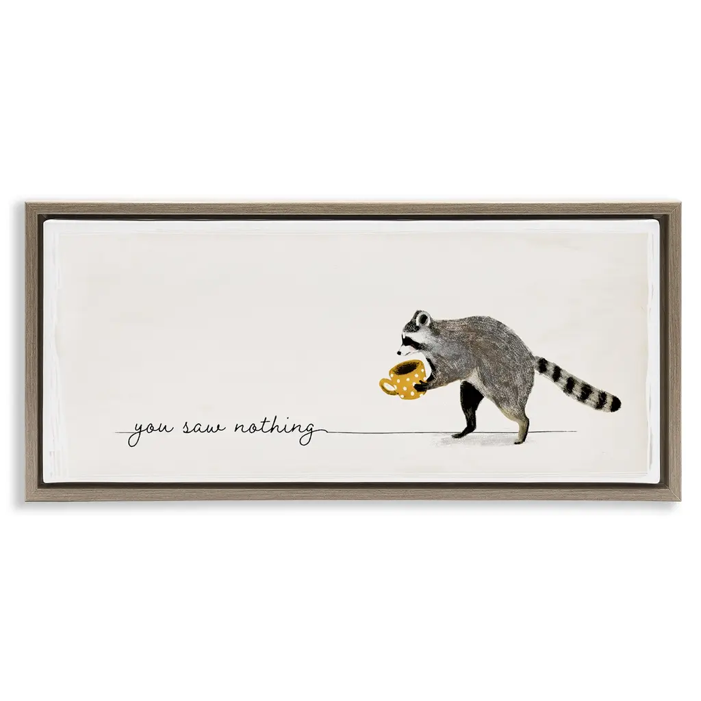 Stupell You Saw Nothing Raccoon & Coffee Framed Giclee Art Design By Victoria Barnes - 30 X 13 - Grey