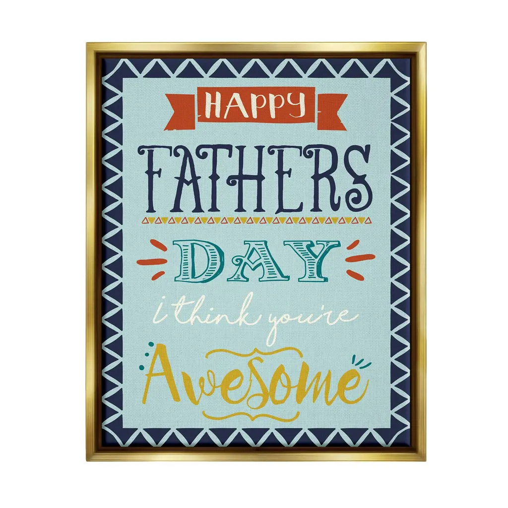 Elevate your home or office to the next level with Stupell Framed Floating Canvas Wall Art. Our premium hand-stretched canvas is mounted securely into a sturdy lightweight frame. The museum-style gap between the wrapped canvas and the box frame gives the illusion of floating artwork. Stupell Wall Art is made in the USA.Features: Dimensions: 17 x 1.7 x 21 Frame, 16 x 1.5 x 20 Canvas ArtFloating Frame Sizes Include Standard: 17 x 1.7 x 21 Oversized: 25 x 1.7 x 31Wall Art is Ready to Hang - No Installation or Hardware Needed. For Easy Set Up Lean or Layer Artwork on Shelf or Against Wall.Our elevated 1.7" Thick Floating Frame is the perfect complement to our canvas style Wall Art. We use only the highest quality inks in house with industry leading printing solutions. Canvas is hand stretched over a durable wood foundation and then mounted securly into a Modern Box Frame. Made in the USA.Artwork Relates To: Father's Day, Dad, Family, Phrase, Happy Father's Day I Think You're AwesomeDesign by Angela Nickeas