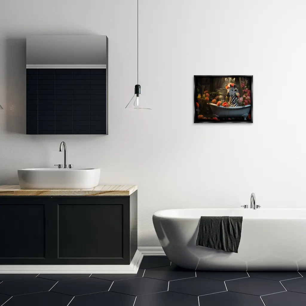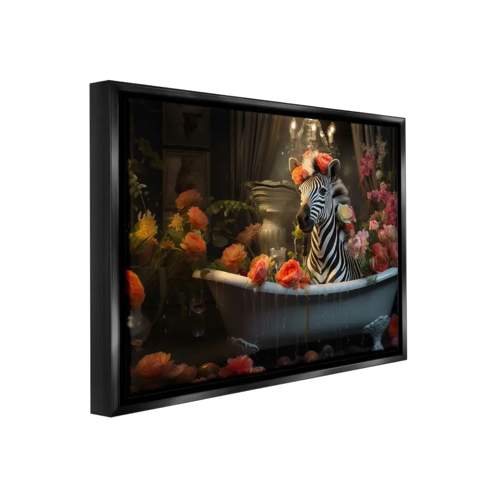 Elevate your home or office to the next level with Stupell Framed Floating Canvas Wall Art. Our premium hand-stretched canvas is mounted securely into a sturdy lightweight frame. The museum-style gap between the wrapped canvas and the box frame gives the illusion of floating artwork. Stupell Wall Art is made in the USA.Features: Dimensions: 21 x 1.7 x 17 Frame, 20 x 1.5 x 16 Canvas ArtFloating Frame Canvas Products are available in sizes 21"x17" and 31"x25". All Floating Frame Canvas Products have a 1.7" Depth.Wall Art is Ready to Hang with Hardware Free Hanging. No Installation required. For Easy Set Up Lean or Layer Artwork on Shelf or Against Wall. Artwork is Permently Fixed into the Frame.Our elevated 1.7" Thick Floating Frame is the perfect complement to our canvas style Wall Art. We use only the highest quality inks in house with industry leading printing solutions. Canvas is hand stretched over a durable wood foundation and then mounted securly into a Modern Box Frame. Made in the USA.Artwork Relates To: Bathroom, Animal, Tub, Flower, Blossom, Zebra, RosesDesign by Lazar Studio