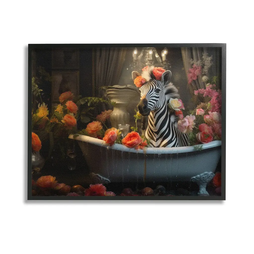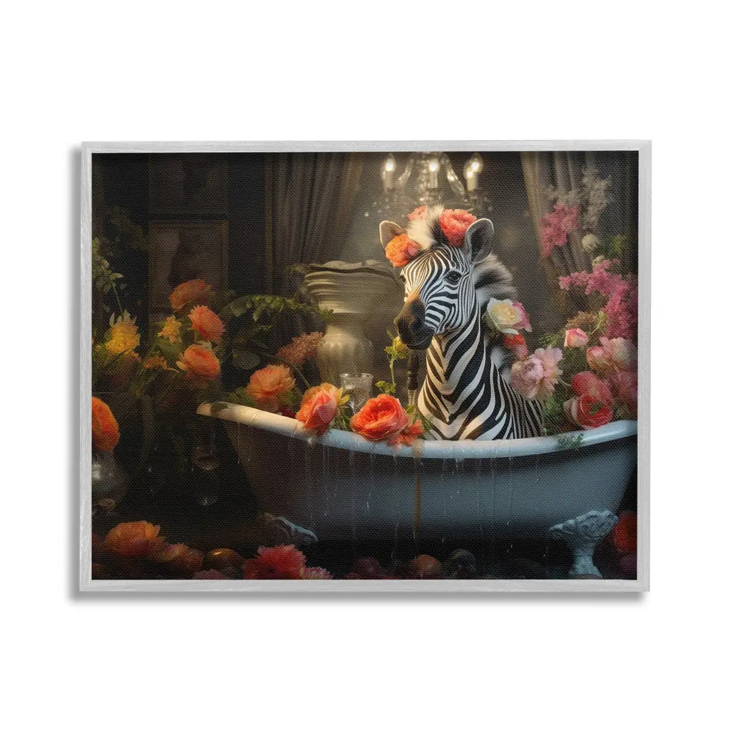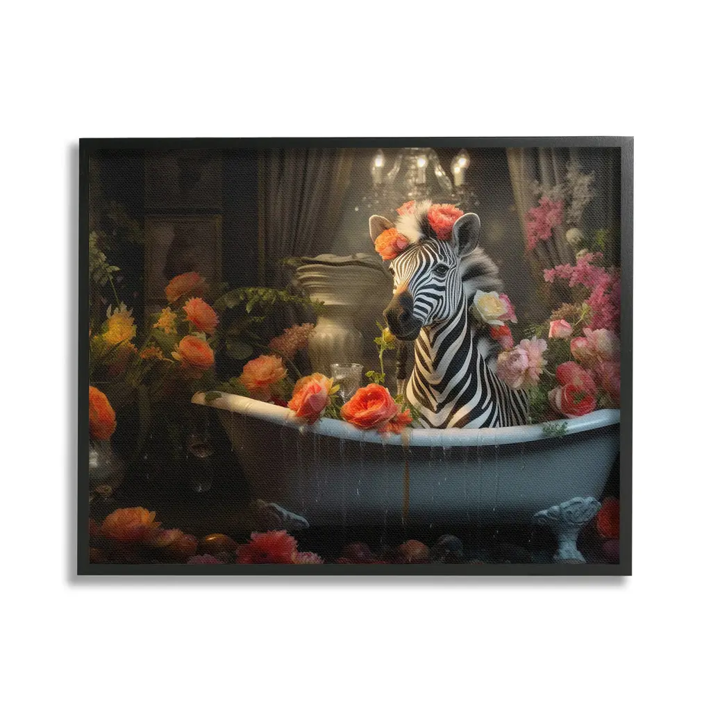 Add dimension to any room with our textured Framed Giclee Artwork. Our framed artwork is securely mounted into a 1.5-inch thick wood grain frame and ready to hang. Frames are available in three alluring styles: black, gray farmhouse and white. In addition, you should check out our oversized options if you want a statement piece. Stupell Wall Art is made in the USA.Features: Dimensions: 14 x 1.5 x 11 FramedFramed Giclee Products are available in the sizes 14"x11", 20"x16" or 30"x24". All Framed Giclee Products have a 1.5" Depth. Wall Art is Ready to Hang with Hardware Free Hanging. No installation required. For Easy Set Up Lean or Layer Artwork on Shelf or Against Wall.Our giclée prints are carefully mounted on a durable MDF backing, and then perfectly finished in a 1.5 inch thick woodgrain frame. Mounted frame colors include black, gray farmhouse and white. Made In USA.Artwork Relates To: Bathroom, Animal, Tub, Flower, Blossom, Zebra, RosesDesign by Lazar Studio