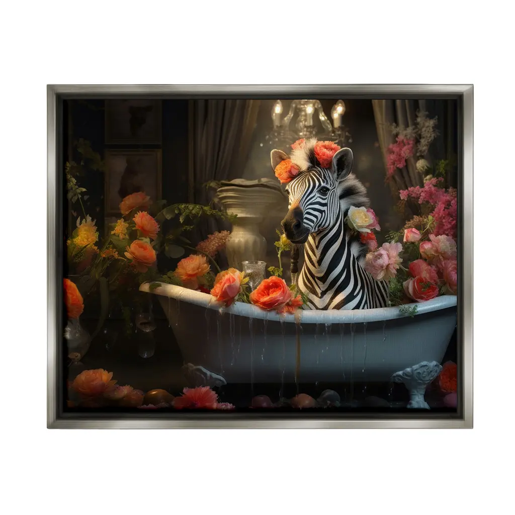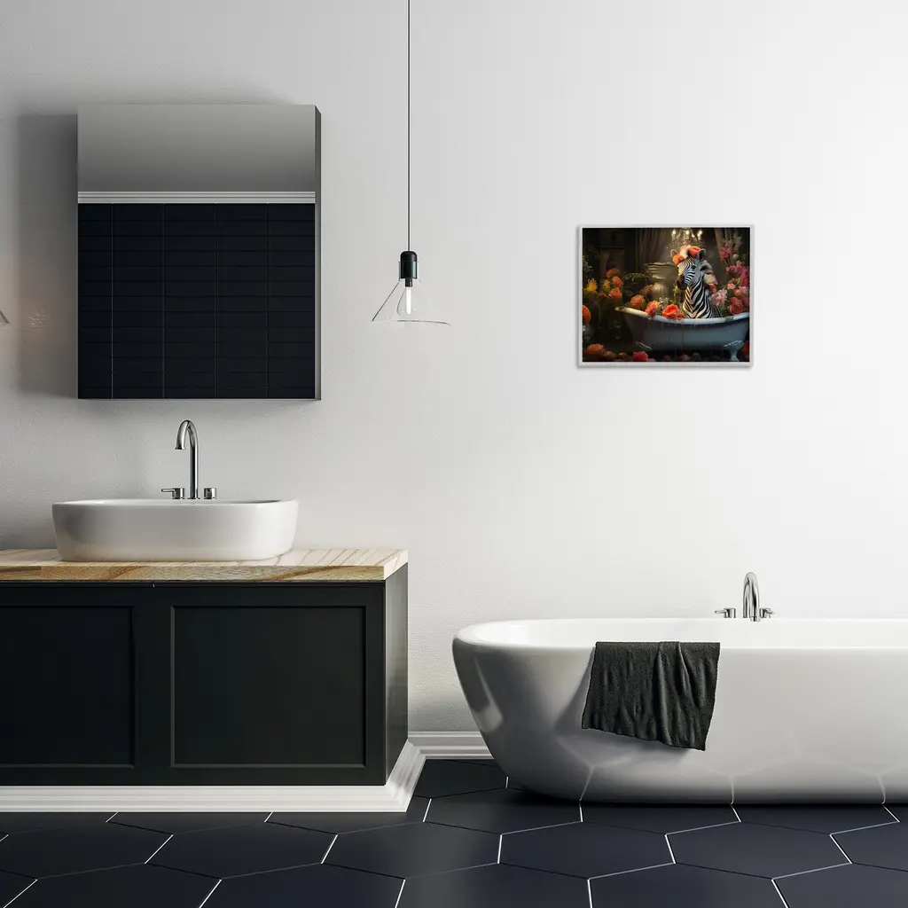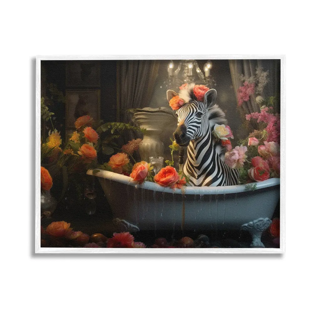 Add dimension to any room with our textured Framed Giclee Artwork. Our framed artwork is securely mounted into a 1.5-inch thick wood grain frame and ready to hang. Frames are available in three alluring styles: black, gray farmhouse and white. In addition, you should check out our oversized options if you want a statement piece. Stupell Wall Art is made in the USA.Features: Dimensions: 14 x 1.5 x 11 FramedFramed Giclee Products are available in the sizes 14"x11", 20"x16" or 30"x24". All Framed Giclee Products have a 1.5" Depth. Wall Art is Ready to Hang with Hardware Free Hanging. No installation required. For Easy Set Up Lean or Layer Artwork on Shelf or Against Wall.Our giclée prints are carefully mounted on a durable MDF backing, and then perfectly finished in a 1.5 inch thick woodgrain frame. Mounted frame colors include black, gray farmhouse and white. Made In USA.Artwork Relates To: Bathroom, Animal, Tub, Flower, Blossom, Zebra, RosesDesign by Lazar Studio