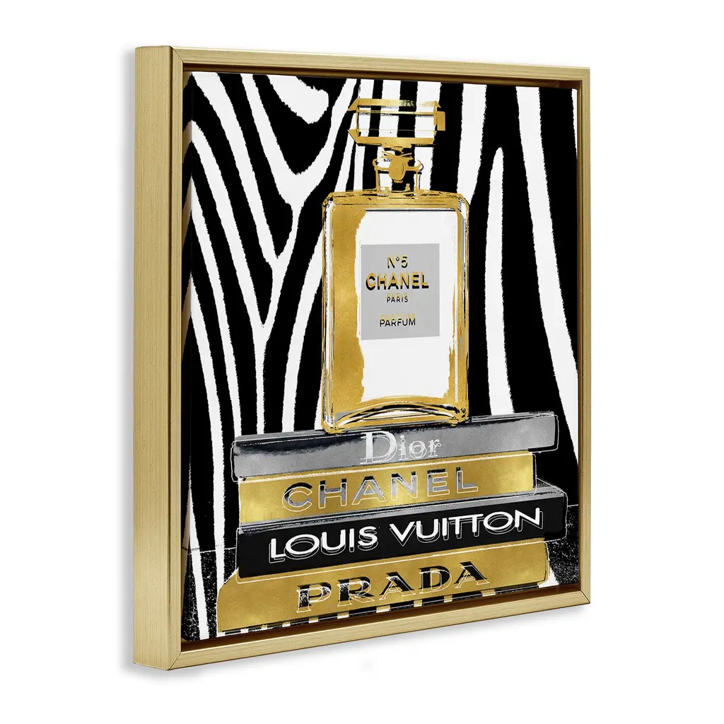 Elevate your home or office to the next level with Stupell Framed Floating Canvas Wall Art. Our premium hand-stretched canvas is mounted securely into a sturdy lightweight frame. The museum-style gap between the wrapped canvas and the box frame gives the illusion of floating artwork. Stupell Wall Art is made in the USA.Features: Dimensions: 18 x 1.7 x 18 Frame, 17 x 1.5 x 17 Canvas ArtFloating Frame Canvas Products are available in sizes 18"x18" and 25"x25". All Floating Frame Canvas Products have a 1.7" Depth.Wall Art is Ready to Hang with Hardware Free Hanging. No Installation required. For Easy Set Up Lean or Layer Artwork on Shelf or Against Wall. Artwork is Permently Fixed into the Frame.Our elevated 1.7" Thick Floating Frame is the perfect complement to our canvas style Wall Art. We use only the highest quality inks in house with industry leading printing solutions. Canvas is hand stretched over a durable wood foundation and then mounted securly into a Modern Box Frame. Made in the USA.Artwork Relates To: Glam, Fashion, Animal Pattern, Zebra, Pattern, Perfume, Bookstack, ModernDesign by Madeline Blake