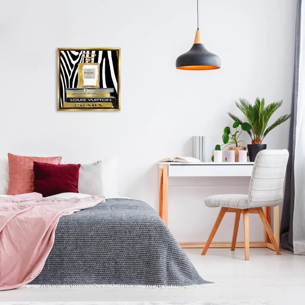 Elevate your home or office to the next level with Stupell Framed Floating Canvas Wall Art. Our premium hand-stretched canvas is mounted securely into a sturdy lightweight frame. The museum-style gap between the wrapped canvas and the box frame gives the illusion of floating artwork. Stupell Wall Art is made in the USA.Features: Dimensions: 18 x 1.7 x 18 Frame, 17 x 1.5 x 17 Canvas ArtFloating Frame Canvas Products are available in sizes 18"x18" and 25"x25". All Floating Frame Canvas Products have a 1.7" Depth.Wall Art is Ready to Hang with Hardware Free Hanging. No Installation required. For Easy Set Up Lean or Layer Artwork on Shelf or Against Wall. Artwork is Permently Fixed into the Frame.Our elevated 1.7" Thick Floating Frame is the perfect complement to our canvas style Wall Art. We use only the highest quality inks in house with industry leading printing solutions. Canvas is hand stretched over a durable wood foundation and then mounted securly into a Modern Box Frame. Made in the USA.Artwork Relates To: Glam, Fashion, Animal Pattern, Zebra, Pattern, Perfume, Bookstack, ModernDesign by Madeline Blake