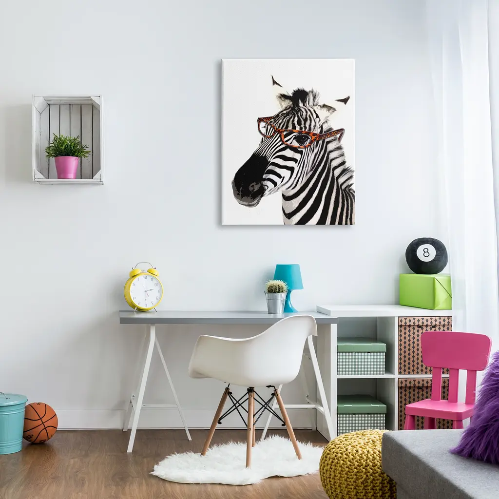 We create our stretched canvas to the highest standards. Using only the highest quality inks and canvas on Mimaki printers, we hand-cut and stretch each piece over a 1.5-inch thick wooden frame for hanging. As a result, the art comes ready to hang on the sturdy ledge with no installation required. Stupell Wall Art is made in the USA.Features: Dimensions: 16 x 1.5 x 20 InchesStretched Canvas Sizes Include Standard: 16 x 1.5 x 20 Large: 20 x 1.5 x 30 X-Large: 30 x 1.5 x 40 Oversized: 36 x 1.5 x 48Wall Art is Ready to Hang with Hardware Free Hanging. No installation required. For Easy Set Up Lean or Layer Artwork on Shelf or Against Wall.Our stretched canvas is created with the highest standards. We use only the highest quality inks and canvas on our in house Mimaki printers, and then hand cut and stretch each piece over a 1.5 inch thick wooden frame for hanging. Made In USA.Artwork Relates To: Animal, Mammal, Wildlife, Zebra, GlassesDesign by Karen Smith