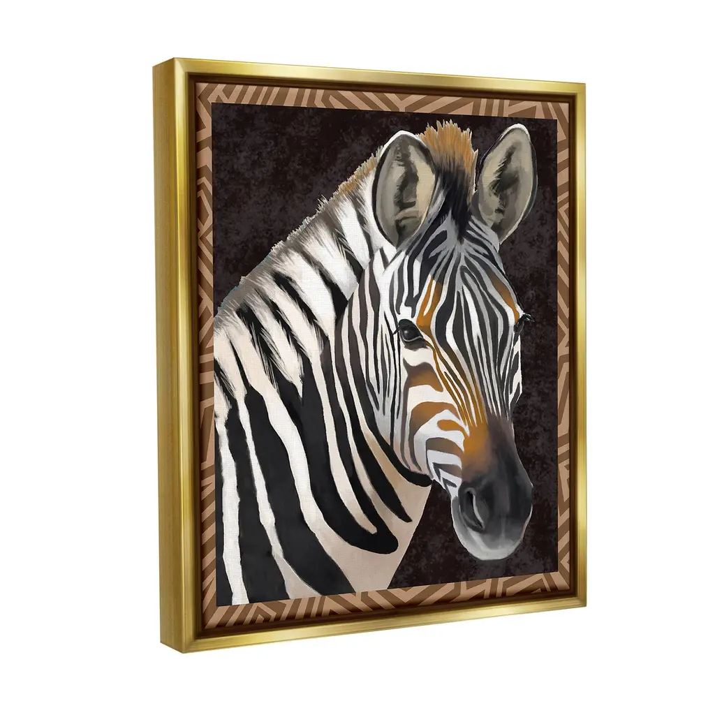Elevate your home or office to the next level with Stupell Framed Floating Canvas Wall Art. Our premium hand-stretched canvas is mounted securely into a sturdy lightweight frame. The museum-style gap between the wrapped canvas and the box frame gives the illusion of floating artwork. Stupell Wall Art is made in the USA.Features: Dimensions: 17 x 1.7 x 21 Frame, 16 x 1.5 x 20 Canvas ArtFloating Frame Canvas Products are available in sizes 17"x21" and 25"x31". All Floating Frame Canvas Products have a 1.7" Depth.Wall Art is Ready to Hang with Hardware Free Hanging. No Installation required. For Easy Set Up Lean or Layer Artwork on Shelf or Against Wall. Artwork is Permently Fixed into the Frame.Our elevated 1.7" Thick Floating Frame is the perfect complement to our canvas style Wall Art. We use only the highest quality inks in house with industry leading printing solutions. Canvas is hand stretched over a durable wood foundation and then mounted securly into a Modern Box Frame. Made in the USA.Artwork Relates To: Animal, Zebra, Mammal, Wildlife, Abstract, Modern, Geometric, PatternDesign by Lucca Sheppard