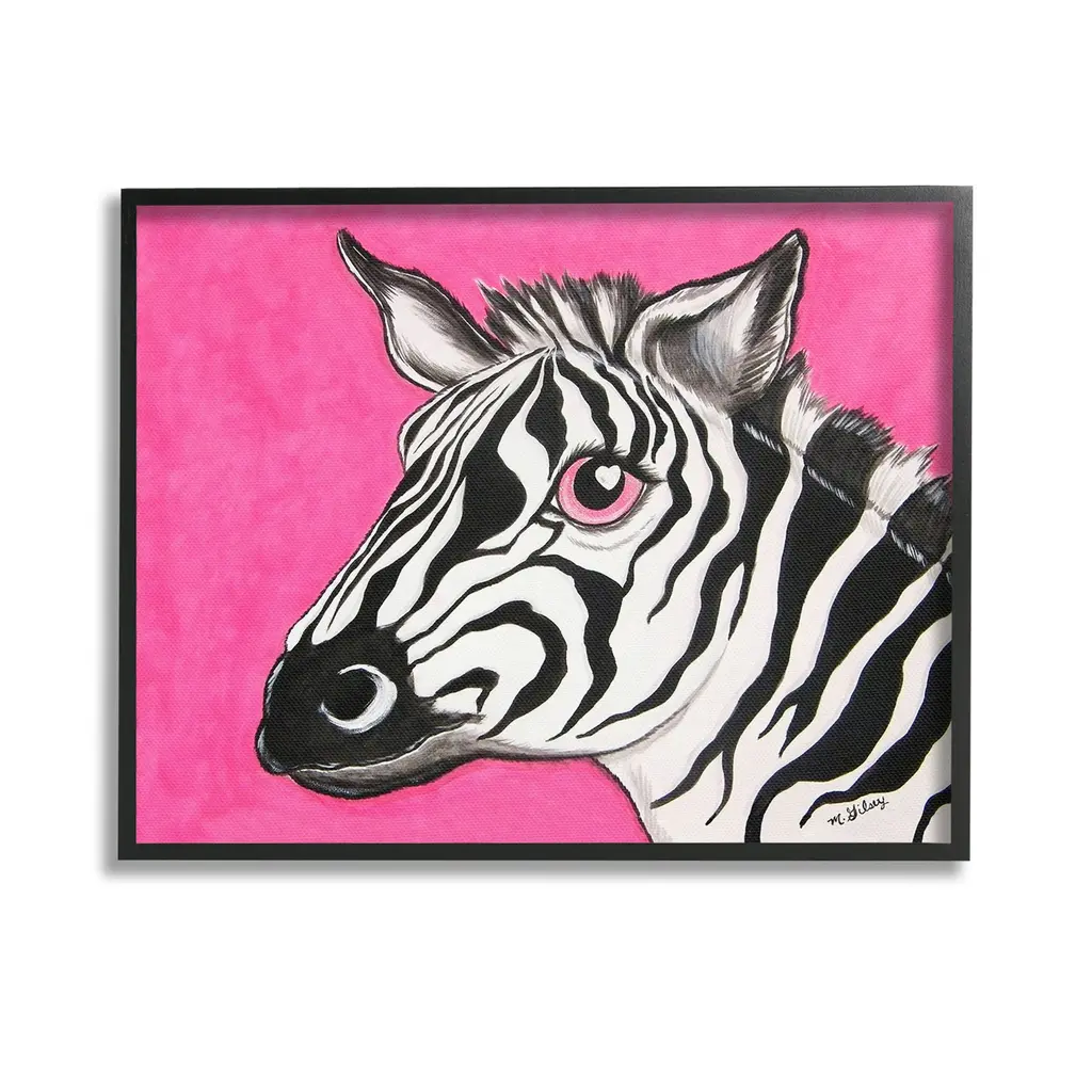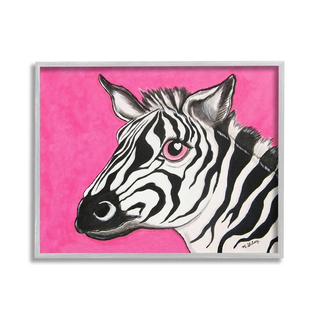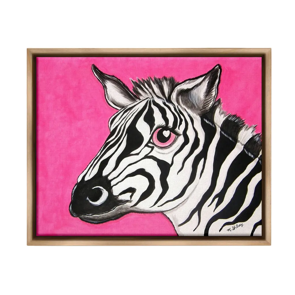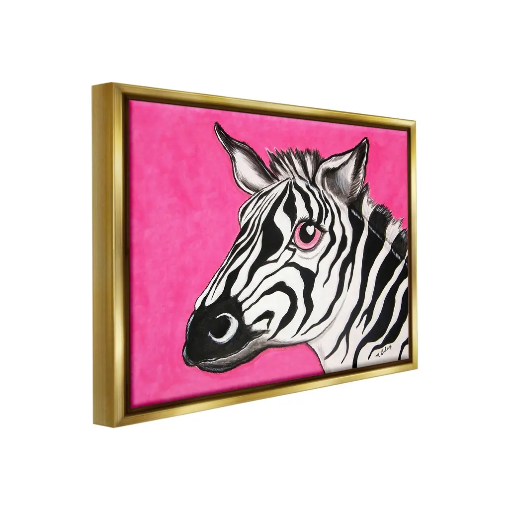 Elevate your home or office to the next level with Stupell Framed Floating Canvas Wall Art. Our premium hand-stretched canvas is mounted securely into a sturdy lightweight frame. The museum-style gap between the wrapped canvas and the box frame gives the illusion of floating artwork. Stupell Wall Art is made in the USA.Features: Dimensions: 21 x 1.7 x 17 Frame, 20 x 1.5 x 16 Canvas ArtFloating Frame Canvas Products are available in sizes 21"x17" and 31"x25". All Floating Frame Canvas Products have a 1.7" Depth.Wall Art is Ready to Hang with Hardware Free Hanging. No Installation required. For Easy Set Up Lean or Layer Artwork on Shelf or Against Wall. Artwork is Permently Fixed into the Frame.Our elevated 1.7" Thick Floating Frame is the perfect complement to our canvas style Wall Art. We use only the highest quality inks in house with industry leading printing solutions. Canvas is hand stretched over a durable wood foundation and then mounted securly into a Modern Box Frame. Made in the USA.Artwork Relates To: Animal, Mammal, Wildlife, Zebra, Heart, Pink, PortraitDesign by Michelle Gilsey