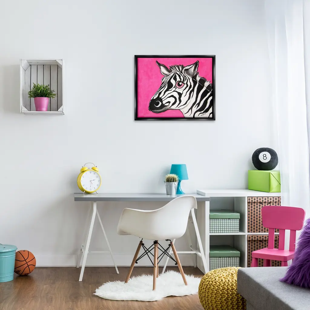 Elevate your home or office to the next level with Stupell Framed Floating Canvas Wall Art. Our premium hand-stretched canvas is mounted securely into a sturdy lightweight frame. The museum-style gap between the wrapped canvas and the box frame gives the illusion of floating artwork. Stupell Wall Art is made in the USA.Features: Dimensions: 21 x 1.7 x 17 Frame, 20 x 1.5 x 16 Canvas ArtFloating Frame Canvas Products are available in sizes 21"x17" and 31"x25". All Floating Frame Canvas Products have a 1.7" Depth.Wall Art is Ready to Hang with Hardware Free Hanging. No Installation required. For Easy Set Up Lean or Layer Artwork on Shelf or Against Wall. Artwork is Permently Fixed into the Frame.Our elevated 1.7" Thick Floating Frame is the perfect complement to our canvas style Wall Art. We use only the highest quality inks in house with industry leading printing solutions. Canvas is hand stretched over a durable wood foundation and then mounted securly into a Modern Box Frame. Made in the USA.Artwork Relates To: Animal, Mammal, Wildlife, Zebra, Heart, Pink, PortraitDesign by Michelle Gilsey