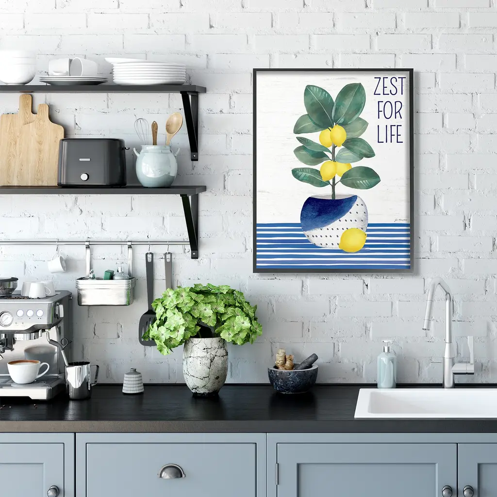 Stupell Zest For Life Lemon Plant Blue Stripes Framed Wall Art - 24 X 30 - Black