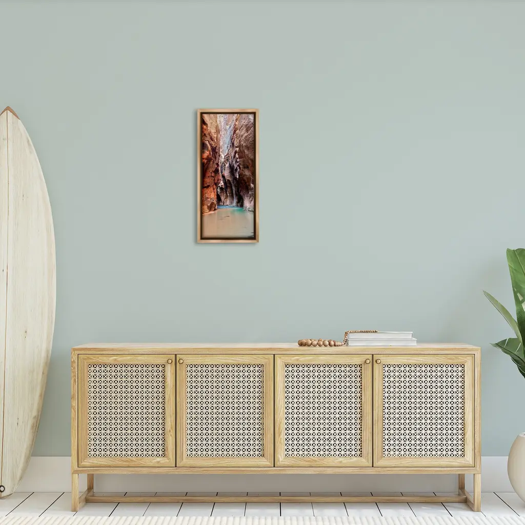 Elevate your home or office to the next level with Stupell Framed Floating Canvas Wall Art. Our premium hand-stretched canvas is mounted securely into a sturdy lightweight frame. The museum-style gap between the wrapped canvas and the box frame gives the illusion of floating artwork. Stupell Wall Art is made in the USA.Features: Dimensions: 11 x 1.7 x 25 Frame, 10 x 1.5 x 24 Canvas ArtFloating Frame Canvas Products are available in sizes 11"x25" and 14"x31". All Floating Frame Canvas Products have a 1.7" Depth.Wall Art is Ready to Hang with Hardware Free Hanging. No Installation required. For Easy Set Up Lean or Layer Artwork on Shelf or Against Wall. Artwork is Permently Fixed into the Frame.Our elevated 1.7" Thick Floating Frame is the perfect complement to our canvas style Wall Art. We use only the highest quality inks in house with industry leading printing solutions. Canvas is hand stretched over a durable wood foundation and then mounted securly into a Modern Box Frame. Made in the USA.Artwork Relates To: Nature, Scenery, Cliff, Beach, Water, Ocean, Sea, LandscapeDesign by Dennis Frates