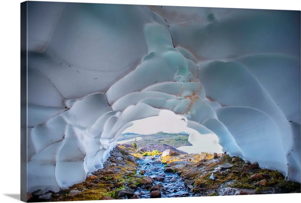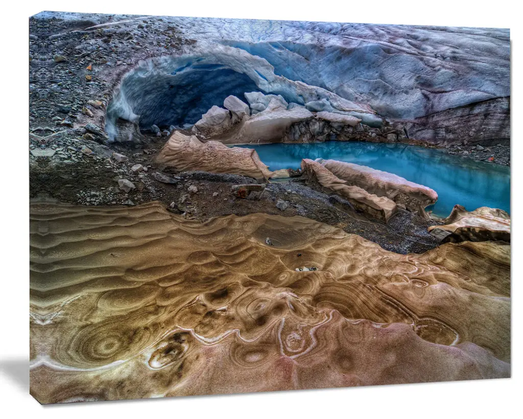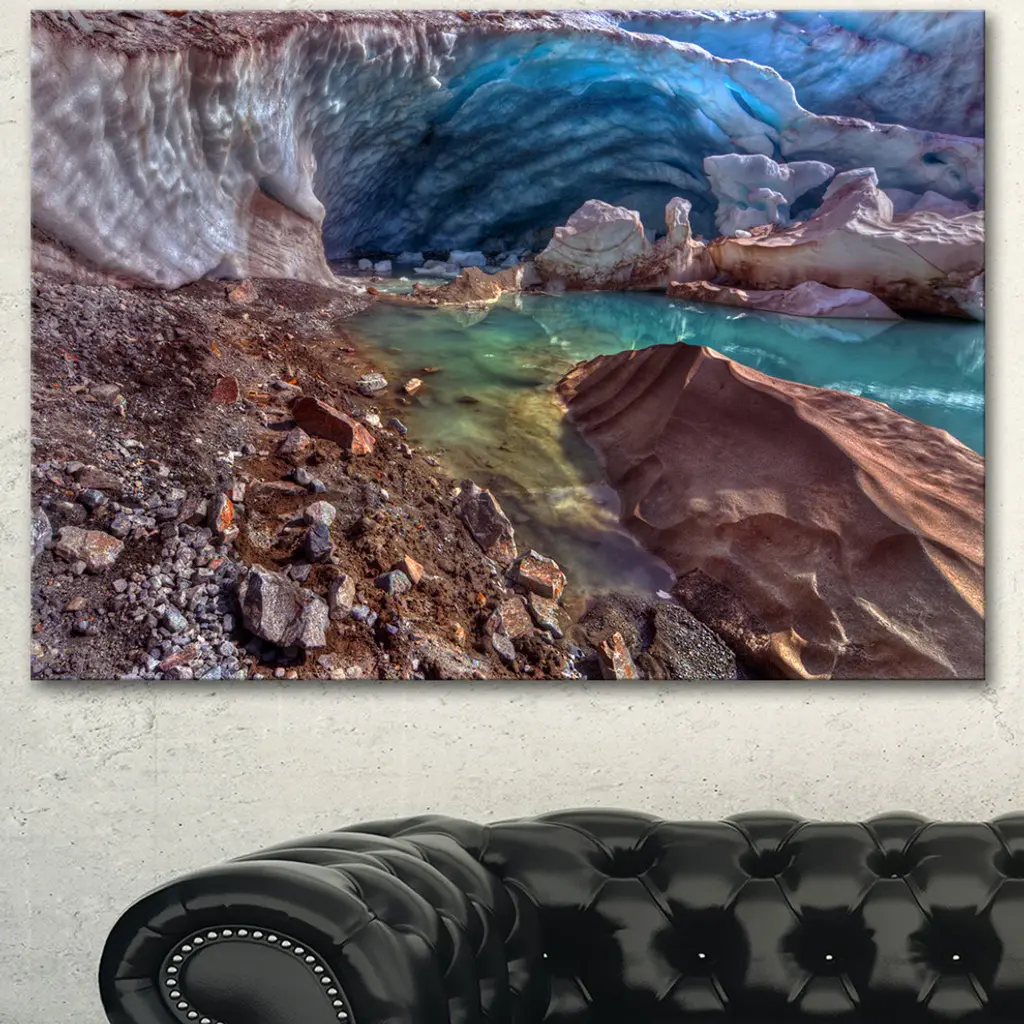 Stylish And Colorful Glacier Cave, Landscape Canvas Art Print, 60"x28"