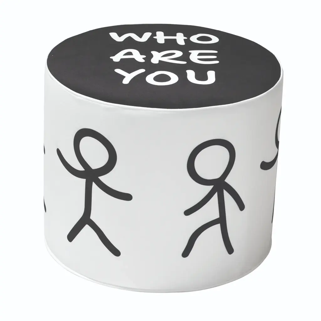 Stylized Drawing Cylinder Pouf S | Qeeboo Who Are You