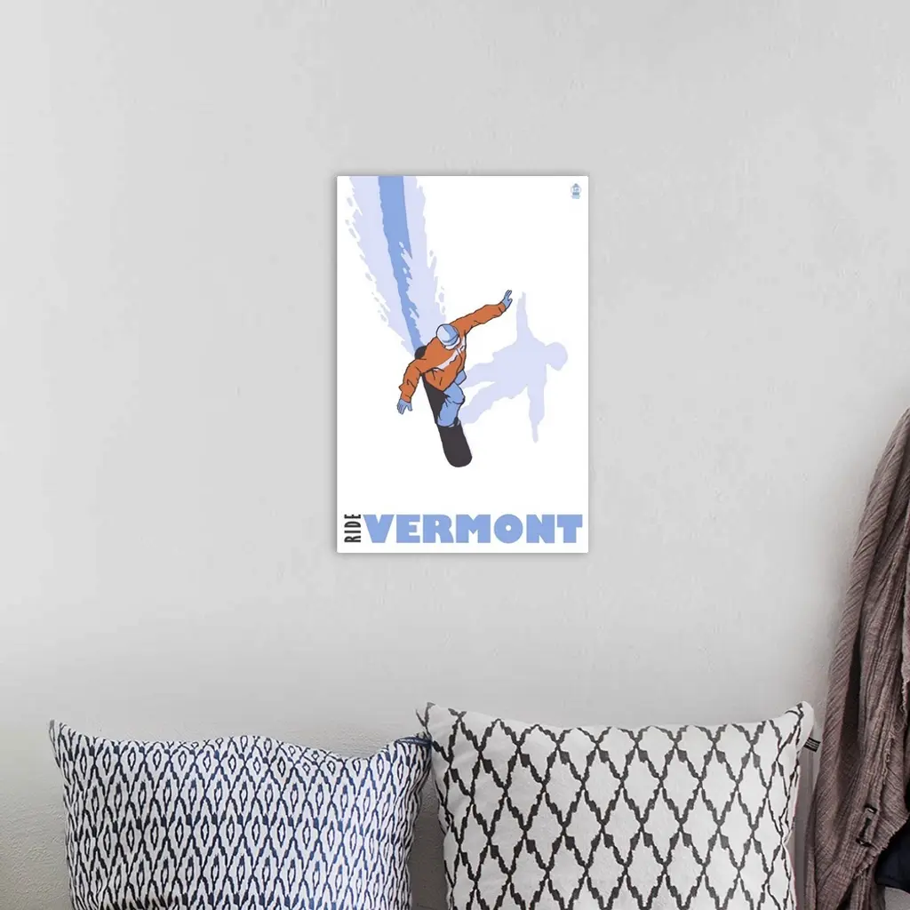 Stylized Snowboarder - Vermont: Retro Travel Poster wall art for home and office decor. Discover canvas art prints, photos, mural, big canvas art and framed wall art in GreatBigCanvas.com's varied collections.