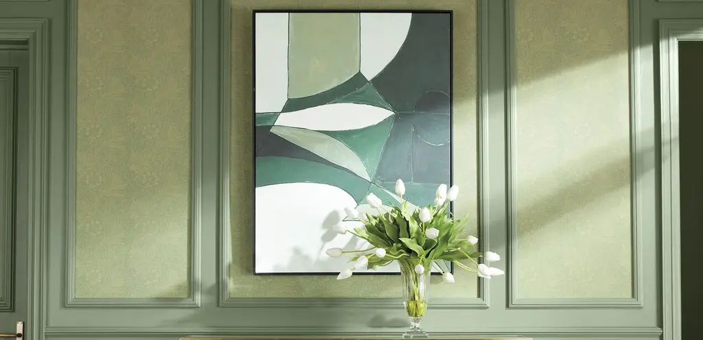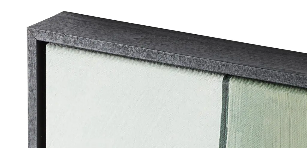 The organic shapes in this abstract composition convey harmony; uneven brushstrokes and hand finishing create subtle complexity in the green values, adding another layer of movement. A remarkable transitional focal point in any room.