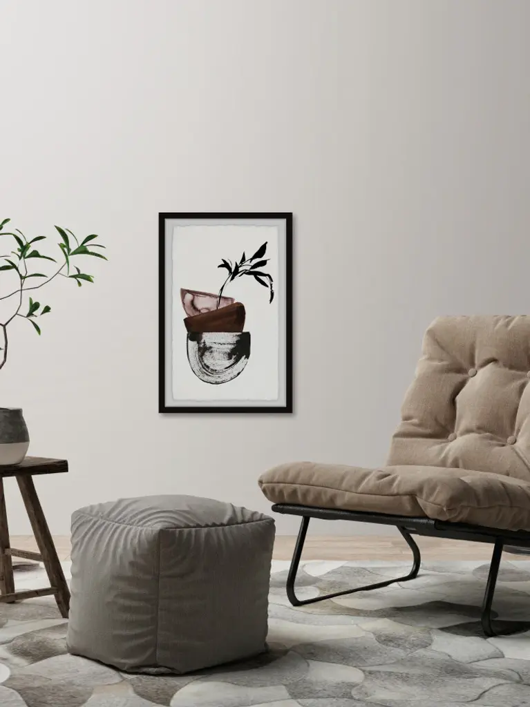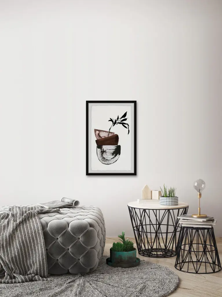 Bring botanical beauty into your space with this watercolor painting print that features an abstract take on a potted plant, rendered in a black and brown color scheme. Proudly printed in the USA, this piece is printed on high quality archive paper and professionally hand-framed. With wall-mounting hooks included, this artful accent is ready to hang up as soon as it reaches your front door.- Top quality Giclee print on high resolution Archive Paper- Hand cut deckled edges- High quality durable non-warping frame- Finished under shatter resistant plexiglass- Arrives ready to hang- Includes a certificate of authenticity- Printed in the USA