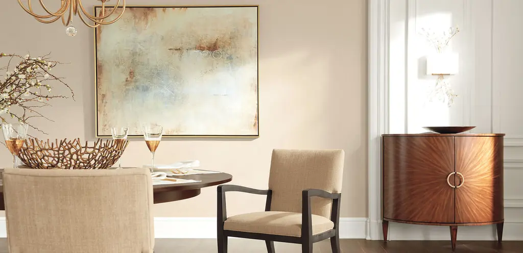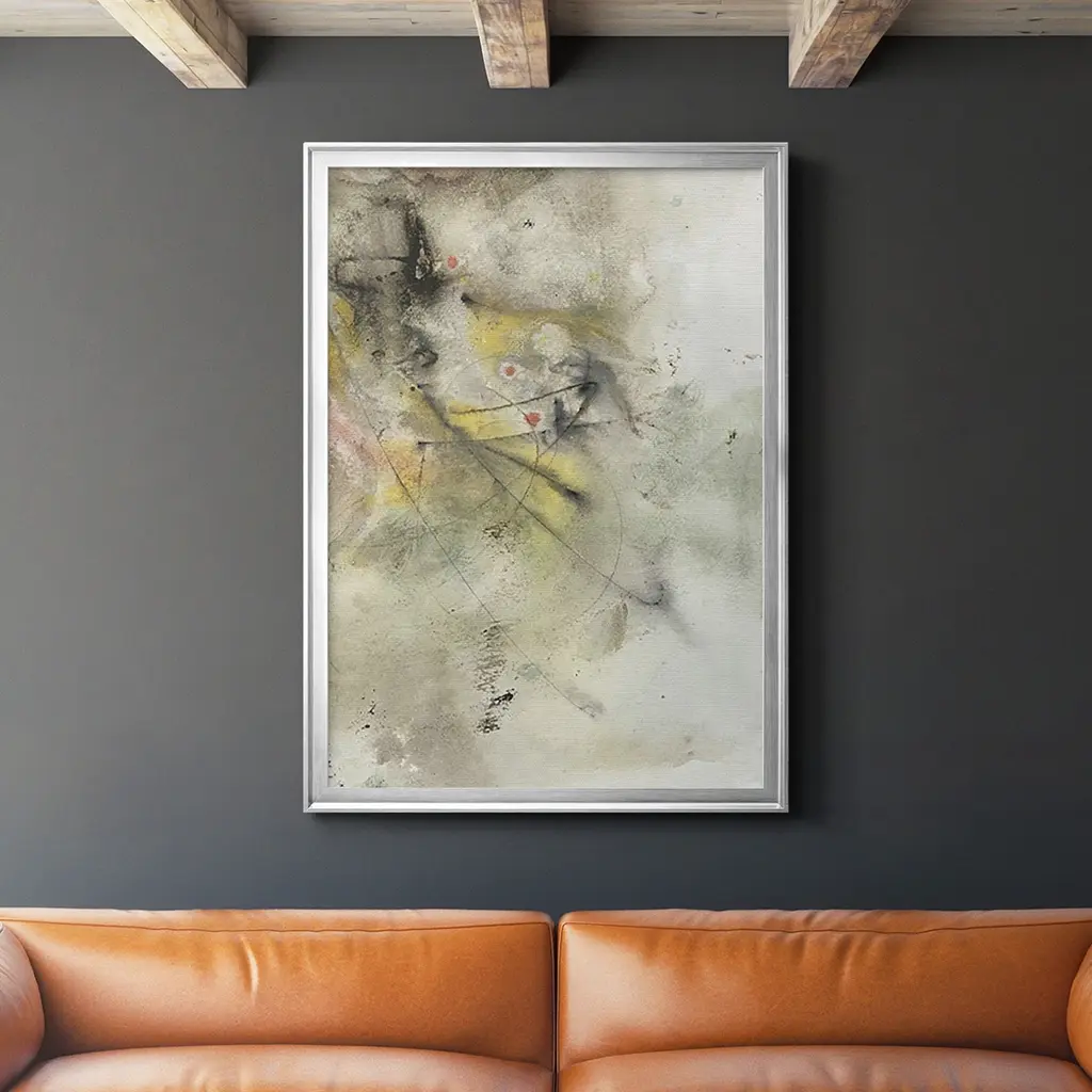 Overscaled. Understated. This stunning, hand-embellished giclée on canvas is clean minimalism at its artistic best. The canvas is surrounded by a clean, minimal float-style frame finished with a dark reveal and a lightly gilded lead edge. The presentation allows all the focus and attention to be paid to the mineral-toned soft abstract. Each limited edition piece is numbered and signed by American Artist Gastone.