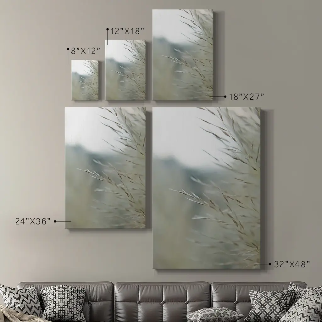 Subtle Grasses III Premium Gallery Wrapped Canvas - Ready to Hang A premium hand stretched gallery wrapped canvas print created to last. Featuring a beveled a solid wood stretcher bar, each piece comes ready to hand 6 SIZES AVAILABLE 8''X12'' - Overall Size 12''X18'' - Overall Size 18''X27'' - Overall Size 24''x36'' - Overall Size 32''x48'' - Overall Size 40''x60'' - Overall Size Each piece is made to order. Built to Last Each piece comes ready to hang Solid wood stretcher Fade and Water resistant Made domestically