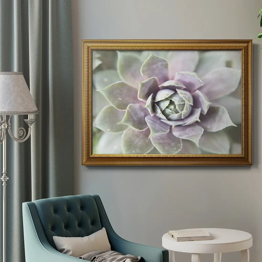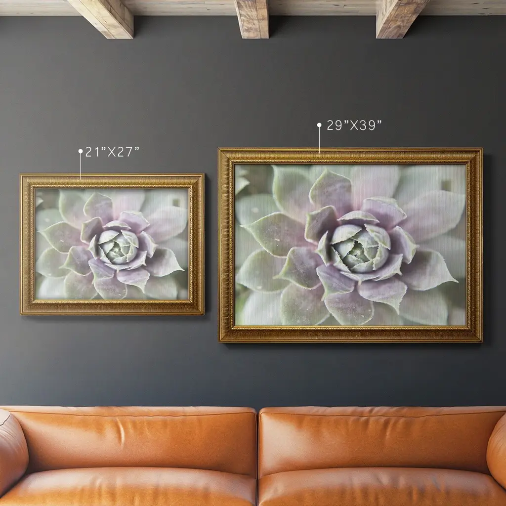 Succulent Glow II Premium Framed Canvas- Ready to Hang A Premium Framed Canvas created to last. Framed in distressed wood and available in an array of sizes and colors Featuring a beveled a solid wood stretcher bar, each piece comes ready to hand 3 SIZES AVAILABLE 16''X20'' - Overall Size 18'X27'' - Overall Size 24''x36'' - Overall Size Each piece is made to order. Each piece comes with hanging hardware. Made in the USA Ready to Hang Giclee Paper Print Acrylic Glass Beveled Matt Board