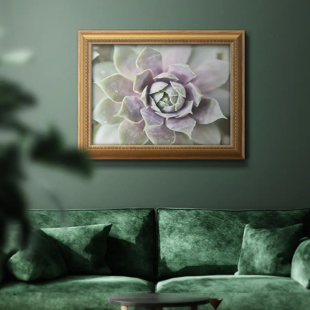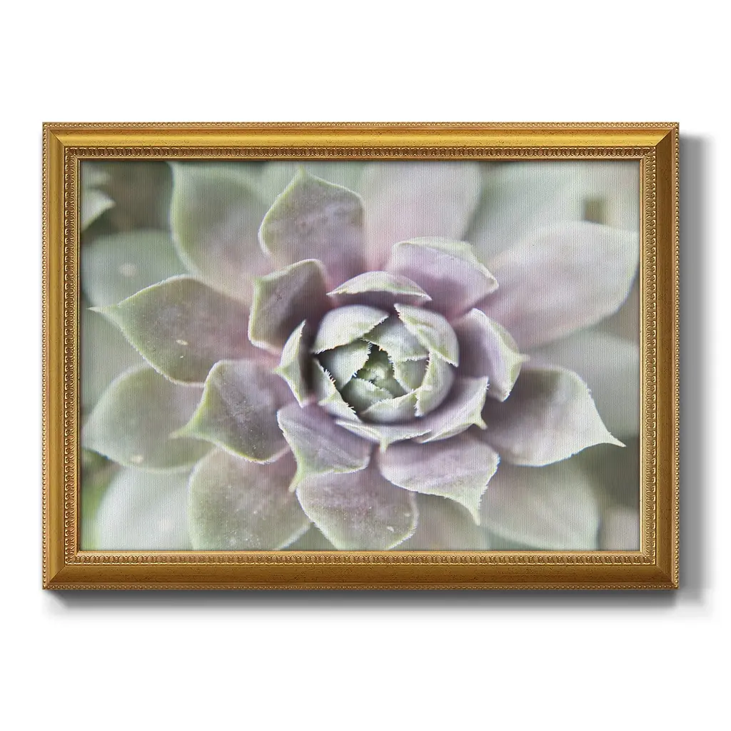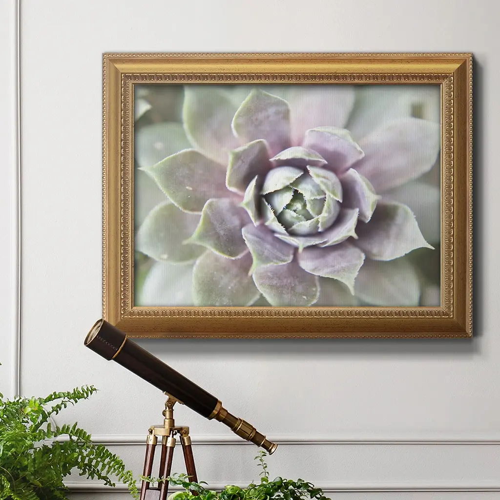 Succulent Glow II Premium Framed Canvas- Ready to Hang A Premium Framed Canvas created to last. Framed in distressed wood and available in an array of sizes and colors Featuring a beveled a solid wood stretcher bar, each piece comes ready to hand 3 SIZES AVAILABLE 16''X20'' - Overall Size 18'X27'' - Overall Size 24''x36'' - Overall Size Each piece is made to order. Each piece comes with hanging hardware. Made in the USA Ready to Hang Giclee Paper Print Acrylic Glass Beveled Matt Board