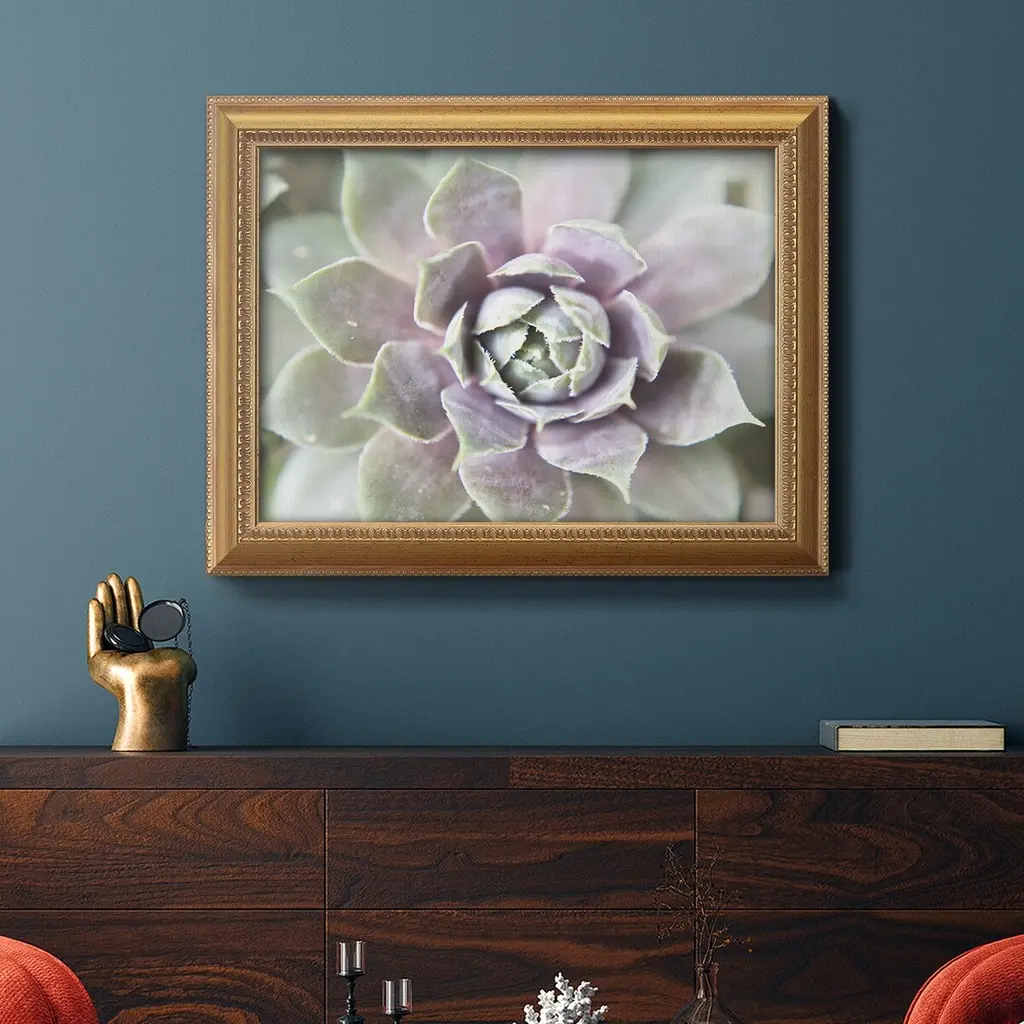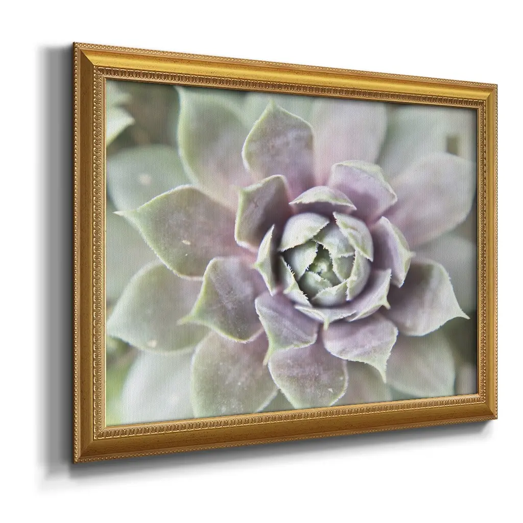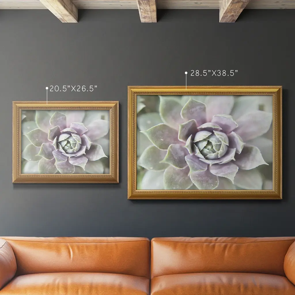 Succulent Glow II Premium Framed Canvas- Ready to Hang A Premium Framed Canvas created to last. Framed in distressed wood and available in an array of sizes and colors Featuring a beveled a solid wood stretcher bar, each piece comes ready to hand 3 SIZES AVAILABLE 16''X20'' - Overall Size 18'X27'' - Overall Size 24''x36'' - Overall Size Each piece is made to order. Each piece comes with hanging hardware. Made in the USA Ready to Hang Giclee Paper Print Acrylic Glass Beveled Matt Board