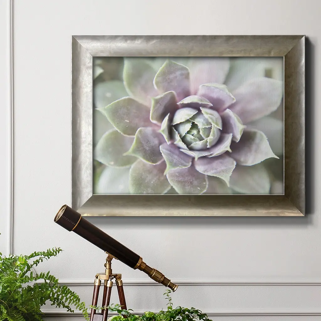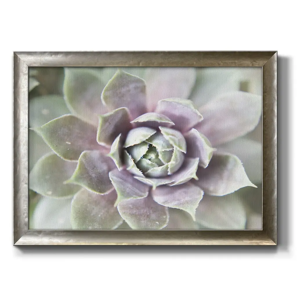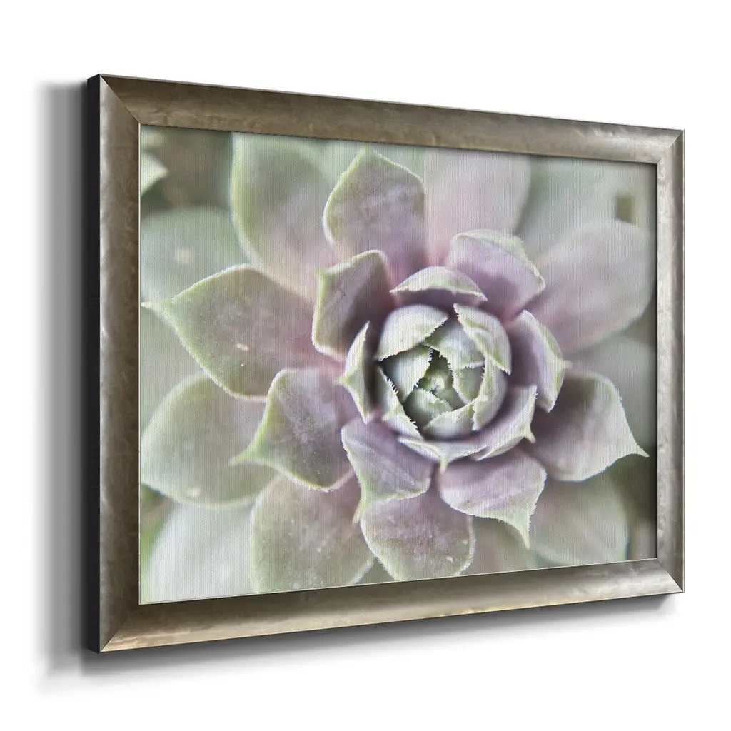 Succulent Glow II Premium Framed Canvas- Ready to Hang A Premium Framed Canvas created to last. Framed in distressed wood and available in an array of sizes and colors Featuring a beveled a solid wood stretcher bar, each piece comes ready to hand 3 SIZES AVAILABLE 16''X20'' - Overall Size 18'X27'' - Overall Size 24''x36'' - Overall Size Each piece is made to order. Each piece comes with hanging hardware. Made in the USA Ready to Hang Giclee Paper Print Acrylic Glass Beveled Matt Board