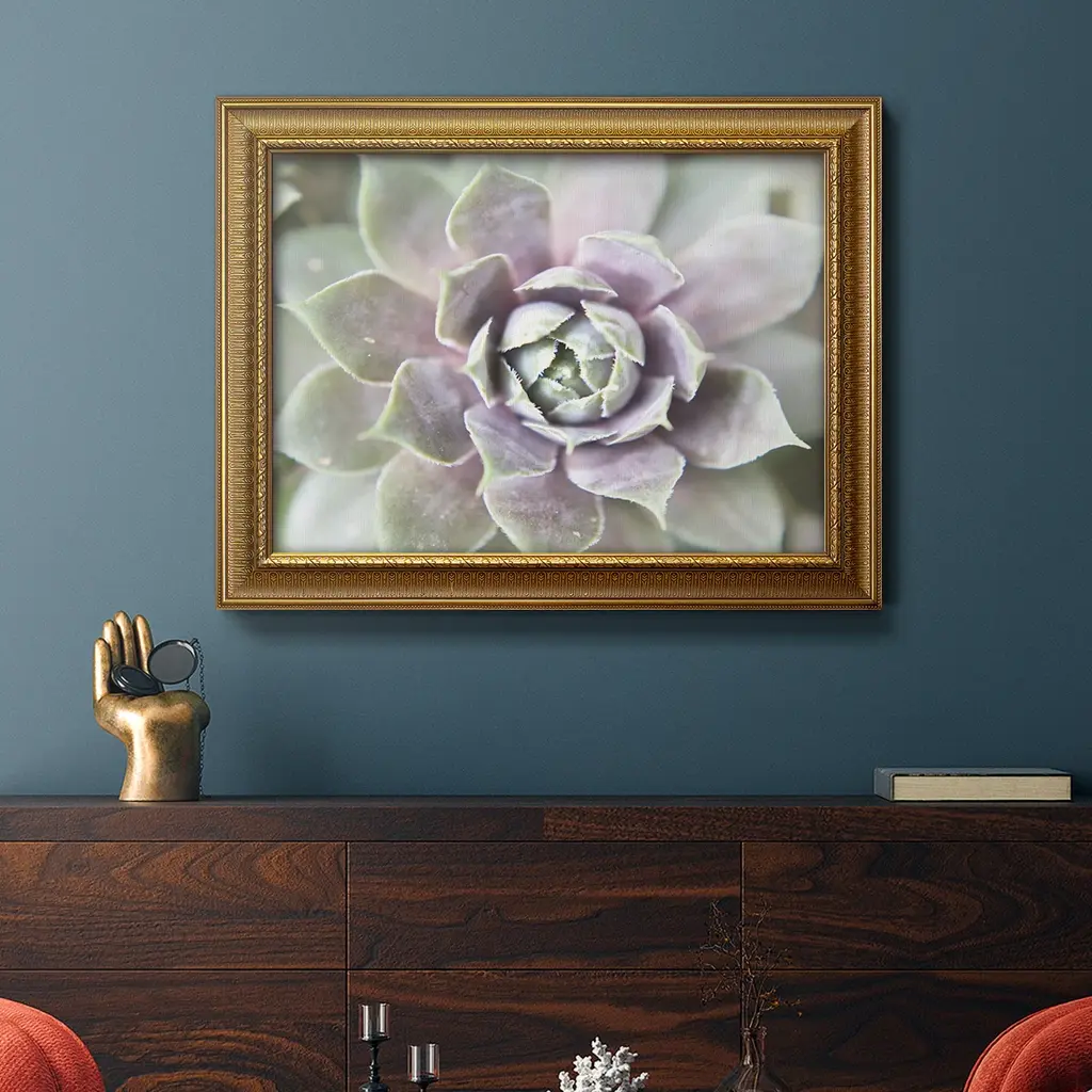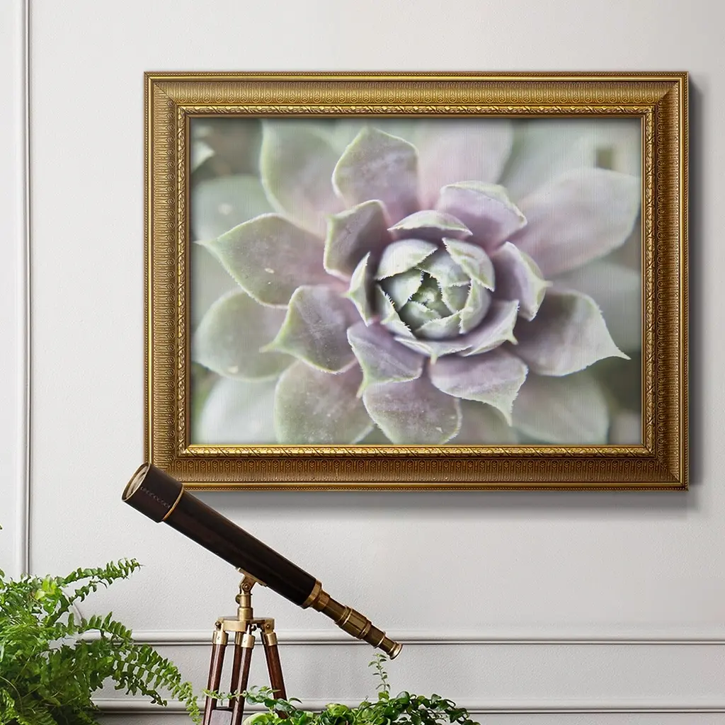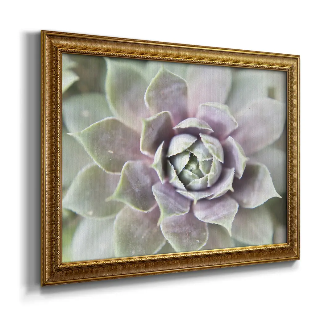 Succulent Glow II Premium Framed Canvas- Ready to Hang A Premium Framed Canvas created to last. Framed in distressed wood and available in an array of sizes and colors Featuring a beveled a solid wood stretcher bar, each piece comes ready to hand 3 SIZES AVAILABLE 16''X20'' - Overall Size 18'X27'' - Overall Size 24''x36'' - Overall Size Each piece is made to order. Each piece comes with hanging hardware. Made in the USA Ready to Hang Giclee Paper Print Acrylic Glass Beveled Matt Board