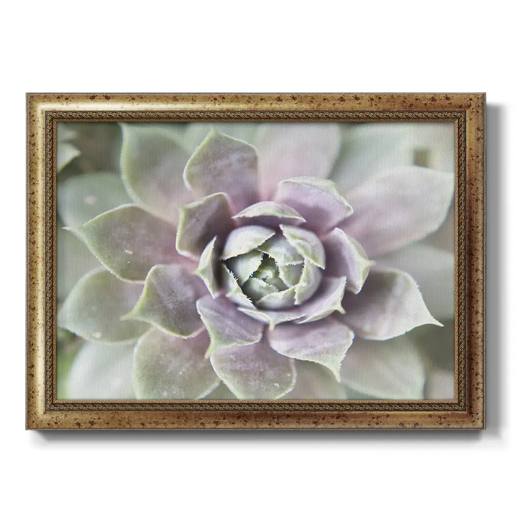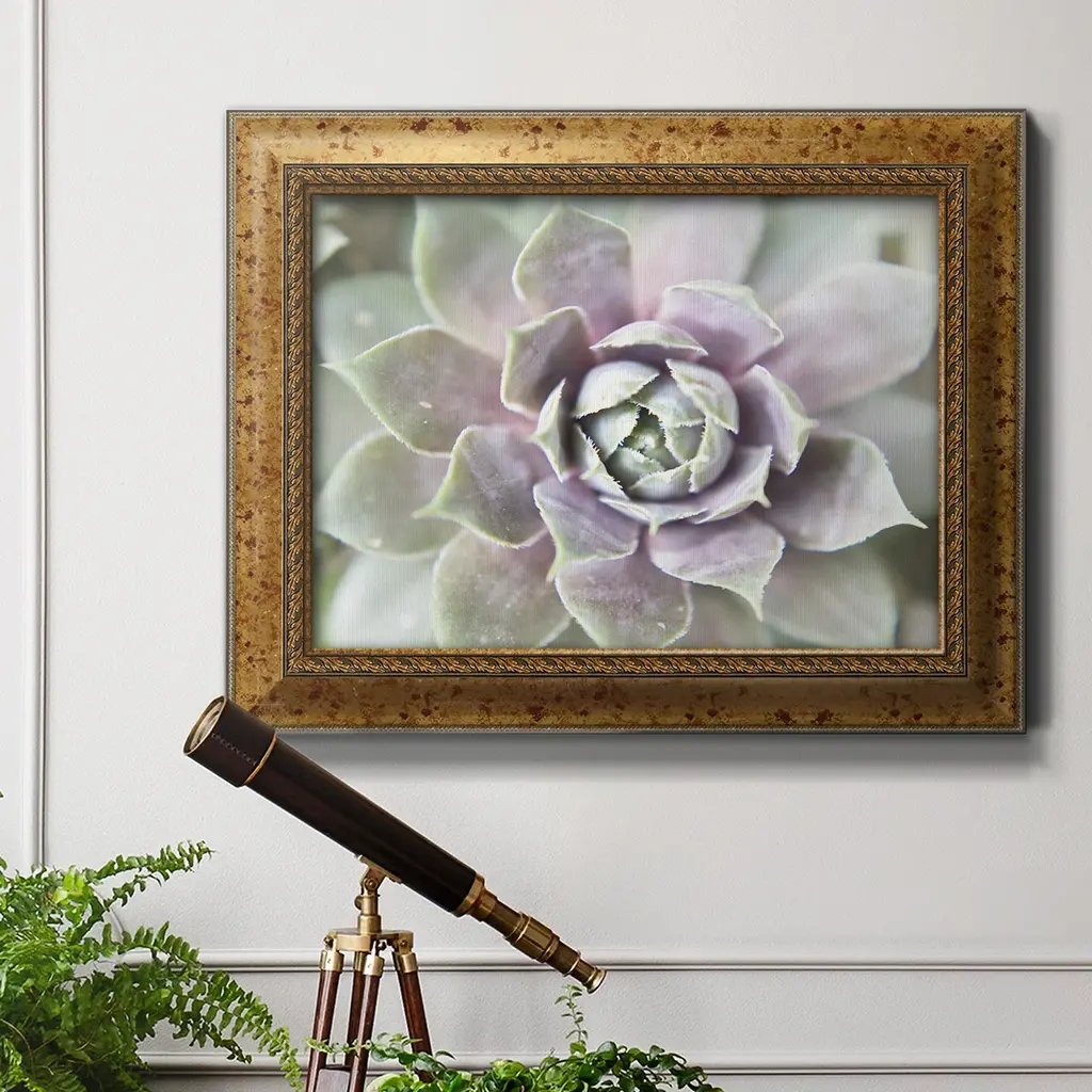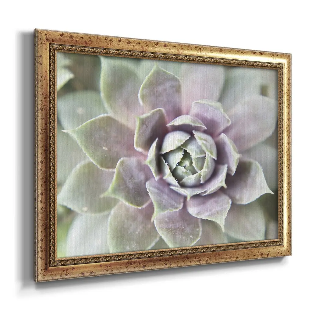 Succulent Glow II Premium Framed Canvas- Ready to Hang A Premium Framed Canvas created to last. Framed in distressed wood and available in an array of sizes and colors Featuring a beveled a solid wood stretcher bar, each piece comes ready to hand 3 SIZES AVAILABLE 16''X20'' - Overall Size 18'X27'' - Overall Size 24''x36'' - Overall Size Each piece is made to order. Each piece comes with hanging hardware. Made in the USA Ready to Hang Giclee Paper Print Acrylic Glass Beveled Matt Board